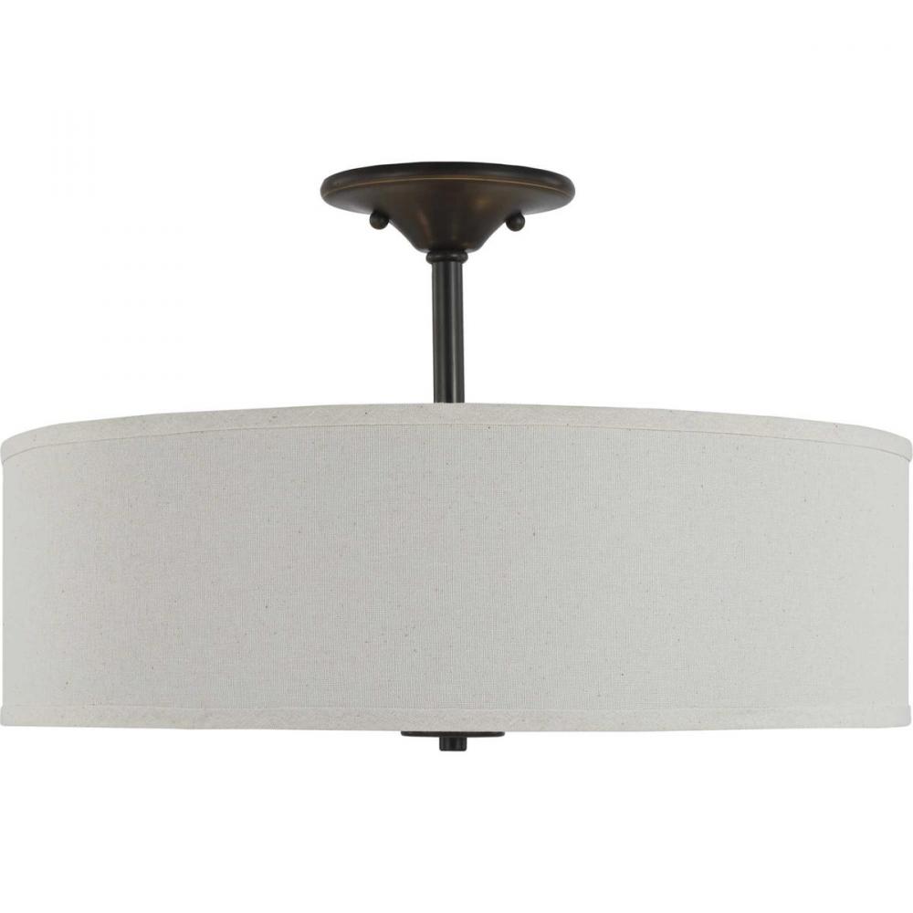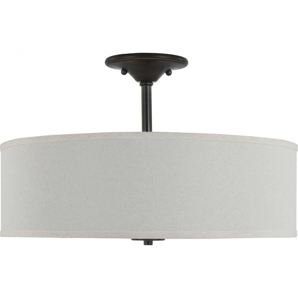 Harkening Back To A Simpler Time, The Inspire Collection Antique Bronze Three-Light Semi-Flush Mount'S Timeless Demeanor Is Sure To Become A Favorite For Generations. A Round, Off-White Linen Shade With An Etched Glass Diffuser Steals The Show And Creates A Beautiful Muted Glow. Understated Metal Accents Complement The Light Fixture As It Fosters A Casual, Friendly Atmosphere.