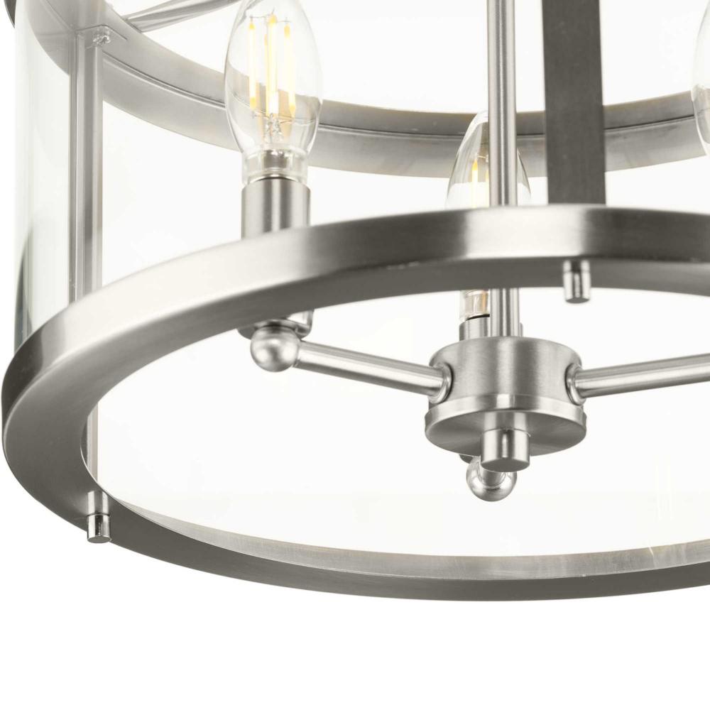 The fixture is coated with a subtle brushed nickel finish, accenting contemporary settings with a classic touch