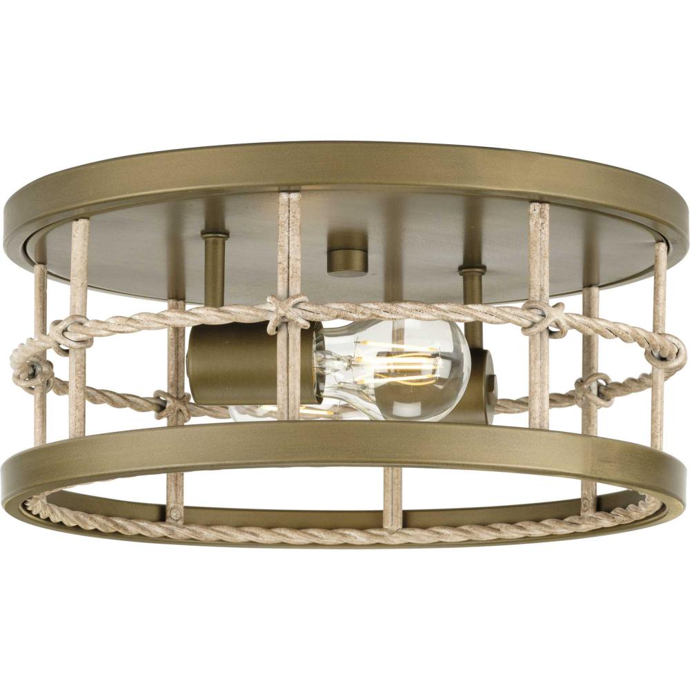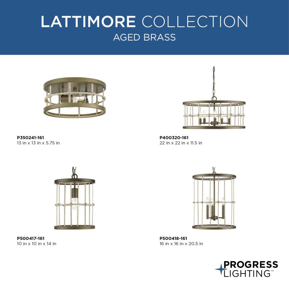An artistically crafted surround creates a beautifully textured composition for Lattimore. Hand forged metal cords are woven within the circular frame offering an eye-catching and unexpected detail to its style. The light's unique design accents global, coastal, and transitional settings while providing soft ambient light to bedrooms, halls and foyers. This fixture is part of the Progress Lighting Design Series, a lighting collection offering fashionable styles and affordable luxury lighting for the home.