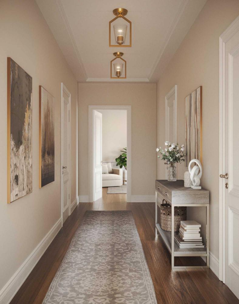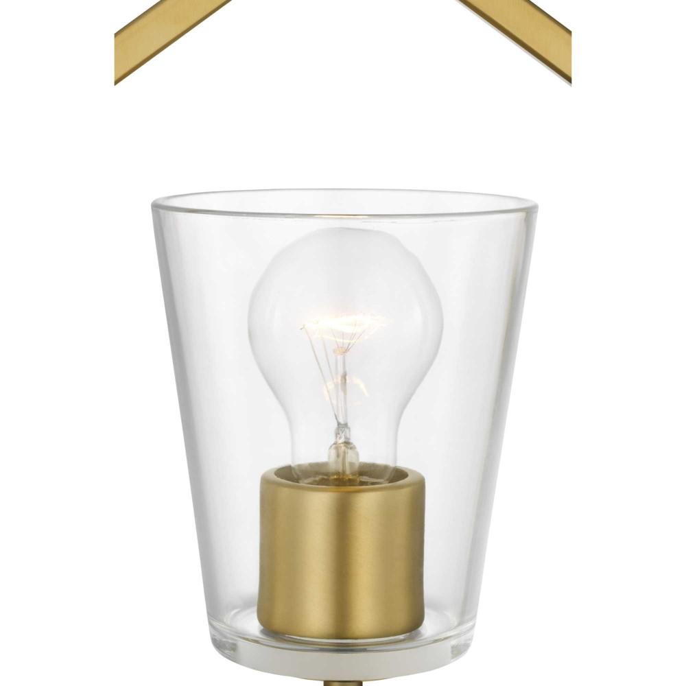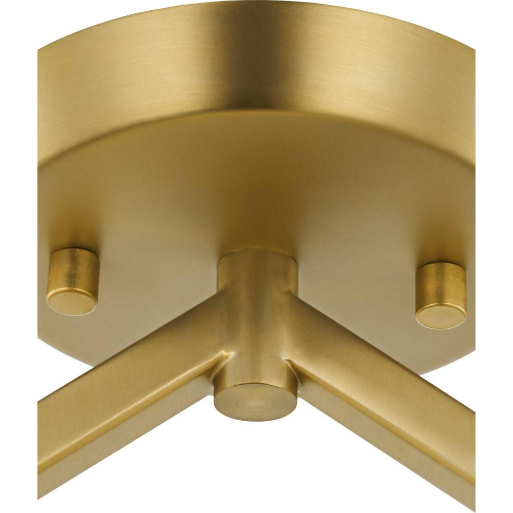 A lovely brushed gold frame define the fixture's distinct, angular silhouette