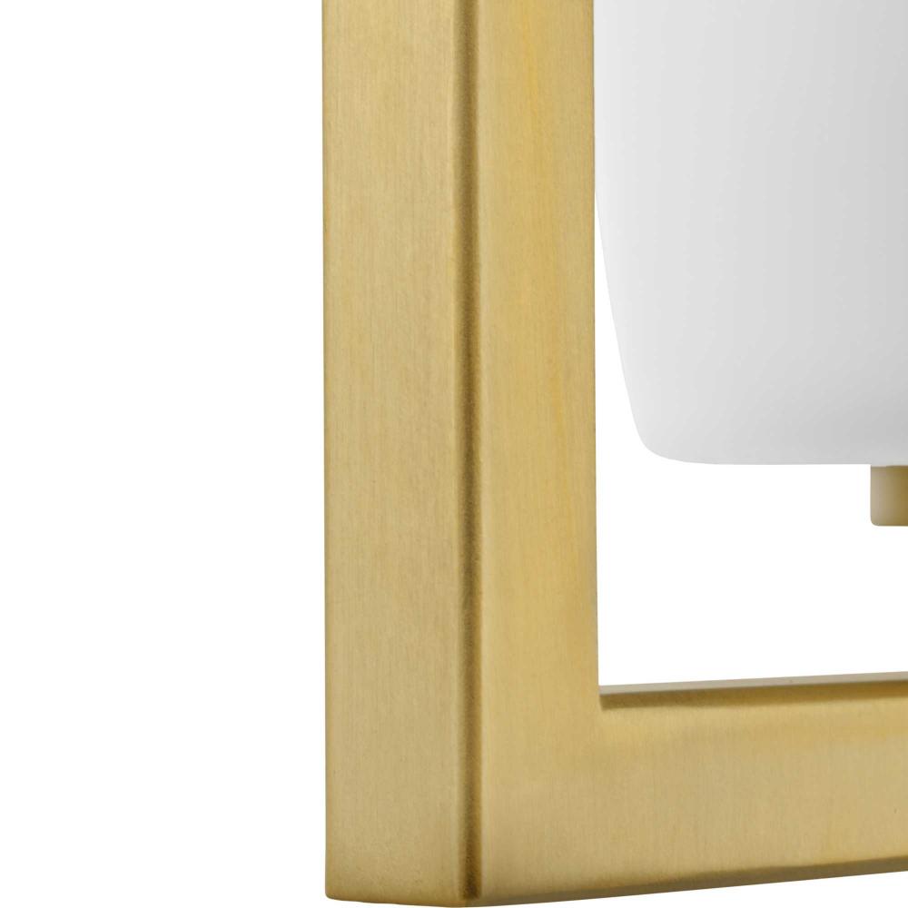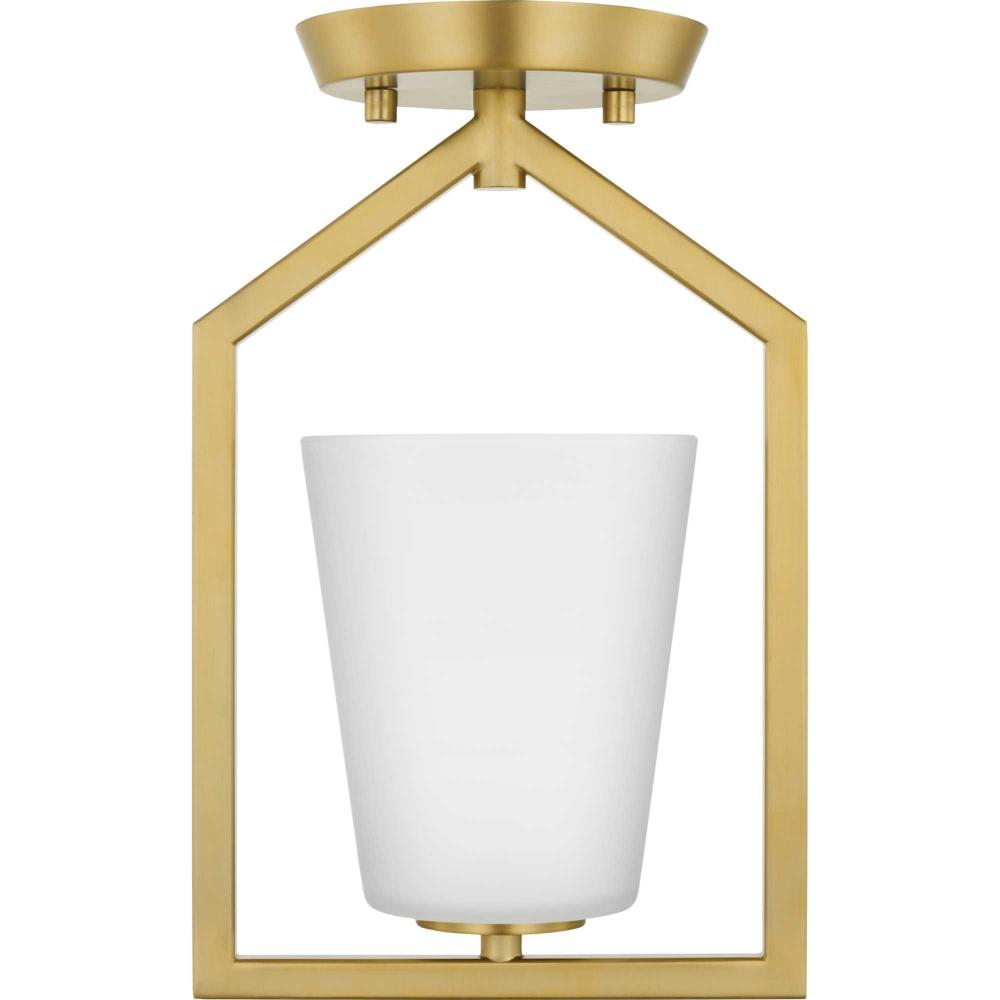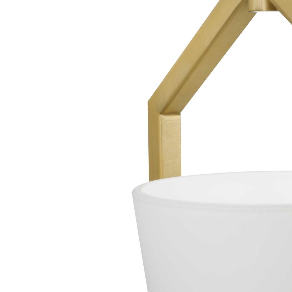 A lovely brushed gold frame define the fixture's distinct, angular silhouette