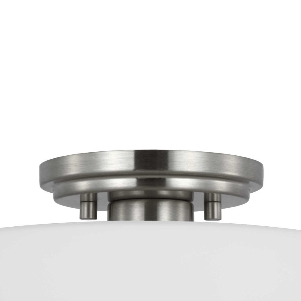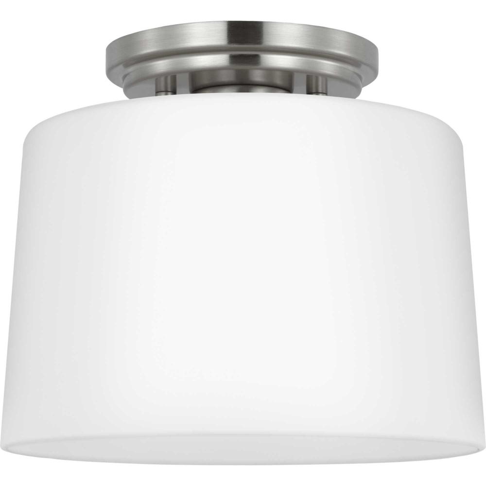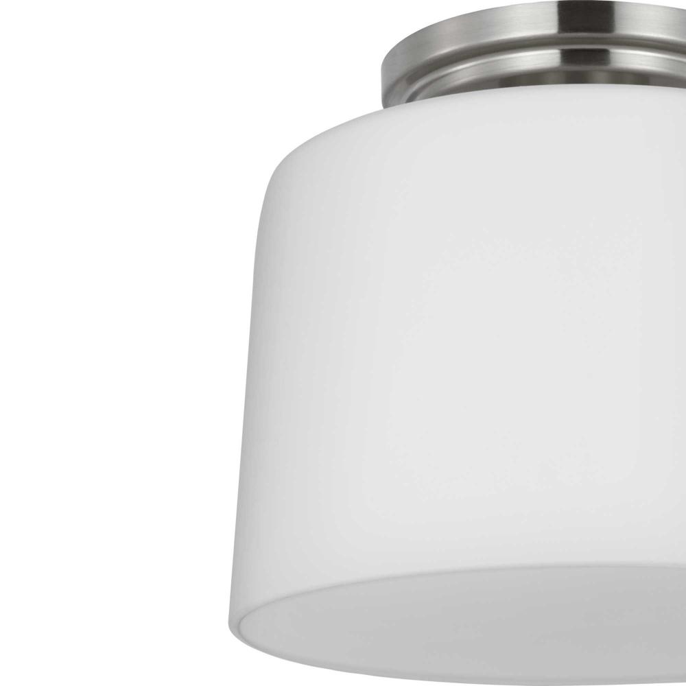 Fundamentally modern but with a traditional twist, the Adley flush mount light features a sleek light base and circular ceiling plate coated in a soft brushed nickel finish. The light source is surrounded by an etched opal glass shade for gorgeous illumination. This ceiling light will find a home in any new traditional or transitional style setting.