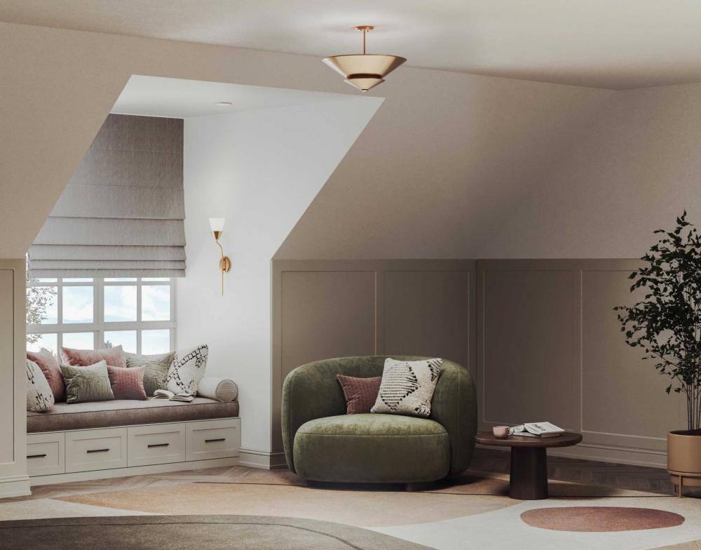 The fixture's nested design offers a contemporary feel in halls, foyers, bedrooms and living rooms