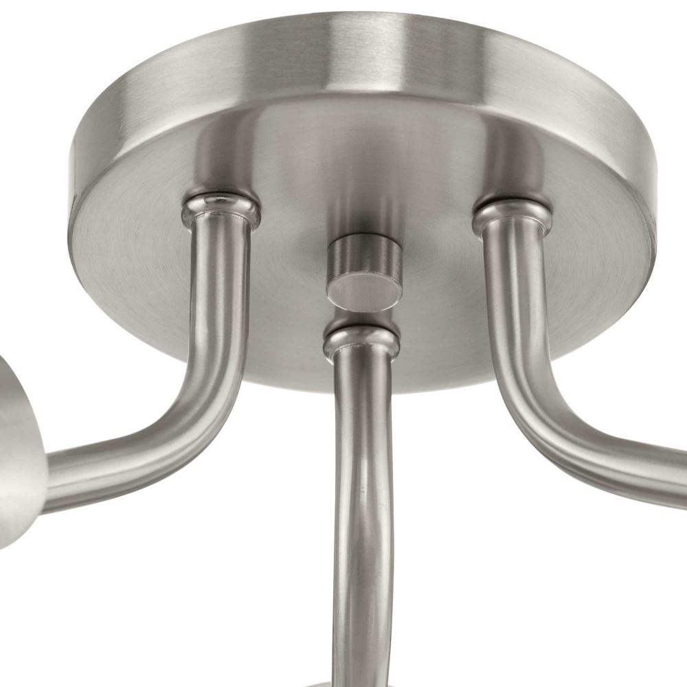 The light's timeless design is coated in a subtle brushed nickel finish