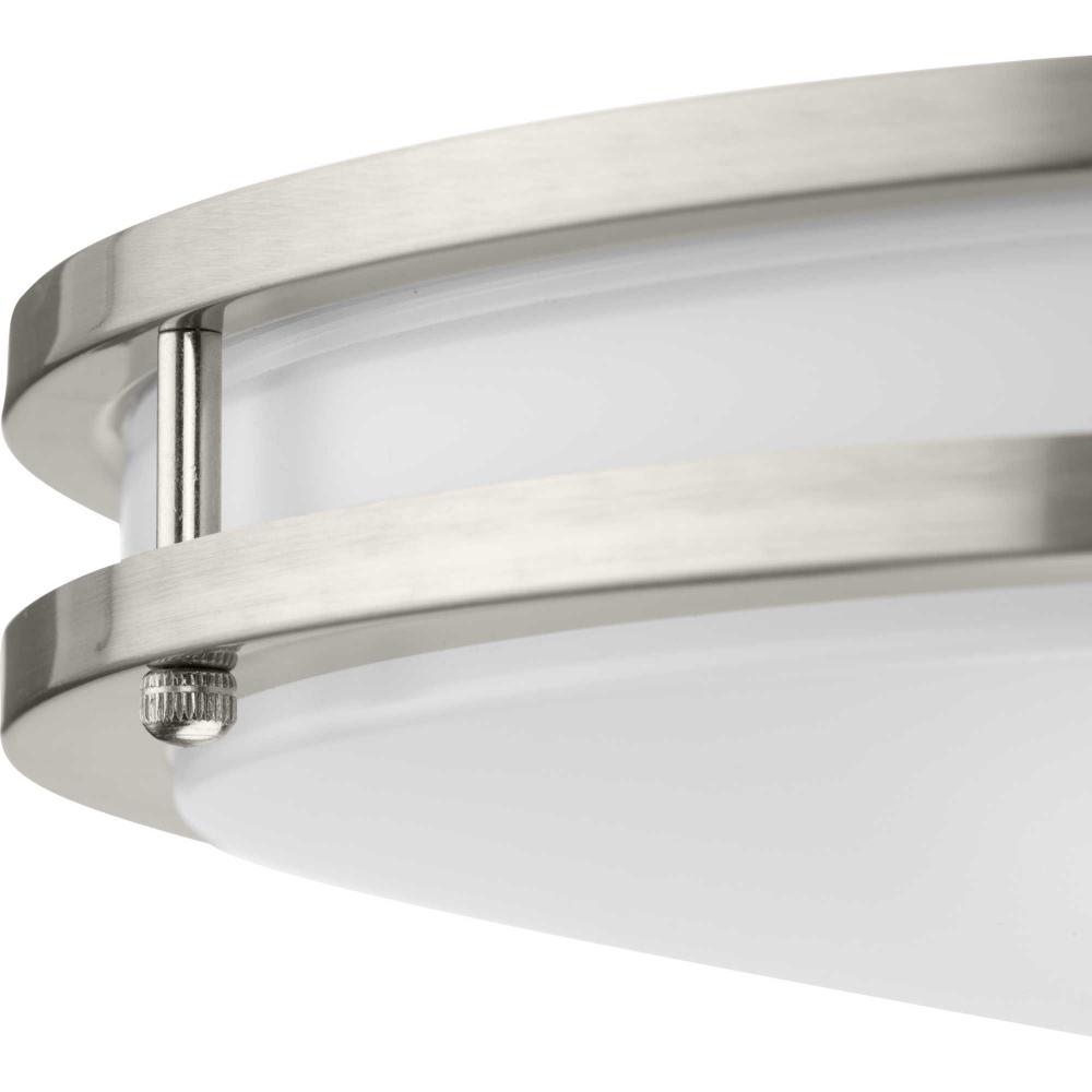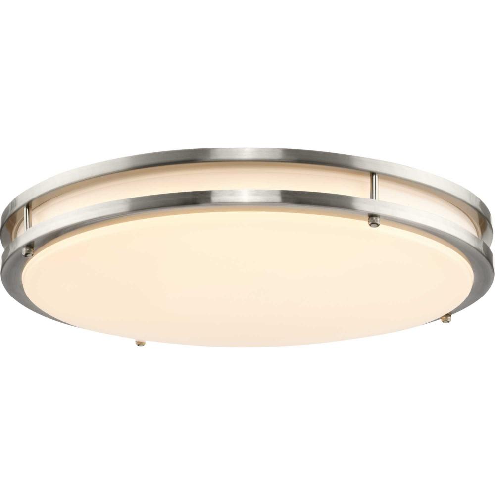 The Abide Integrated LED Large Round Flush Mount Light is precision crafted for contemporary settings. Sleek Brushed Nickel circular bands hold a white acrylic diffuser concealing its 5 CCT selectable (2700K, 3000K, 3500K, 4000K and 5000K) dimmable LED light source.