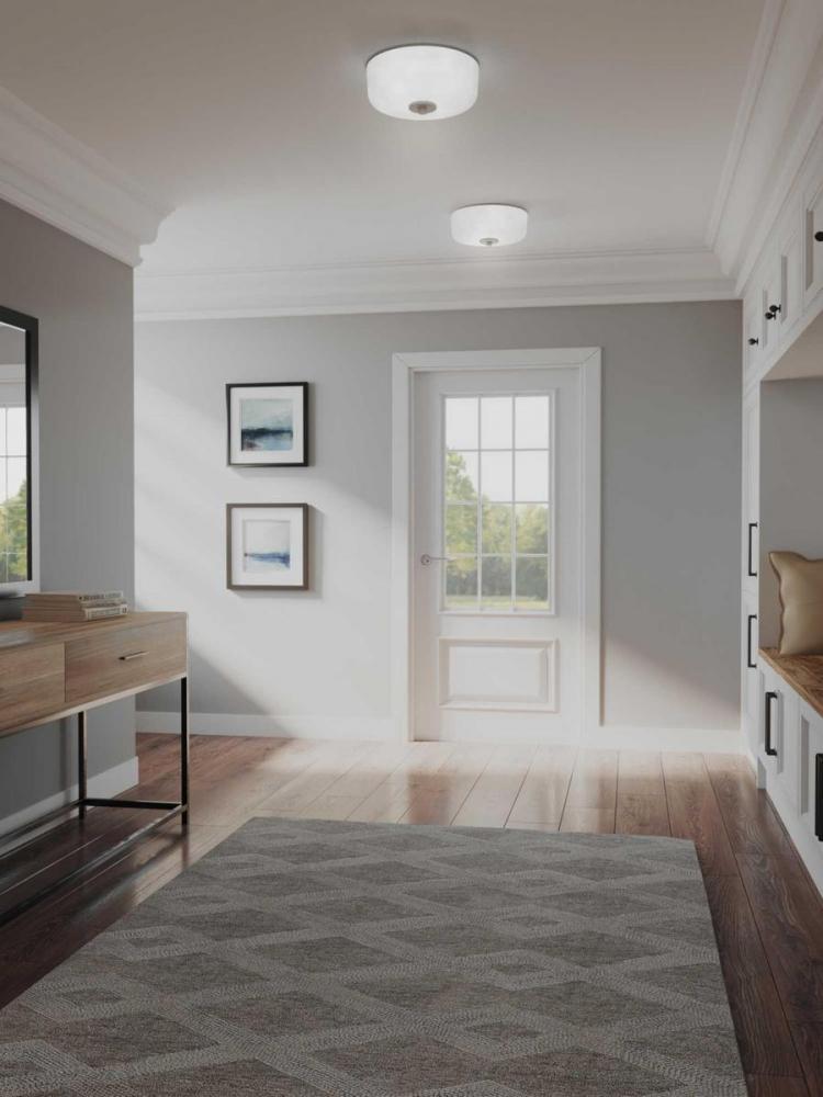Create the sophisticated feel of modern, urban living in your home with this two-light flush mount with textured white linen glass with a clear edge accent. If you desire a vintage mid-century modern look, the Alexa Collection is just for you.