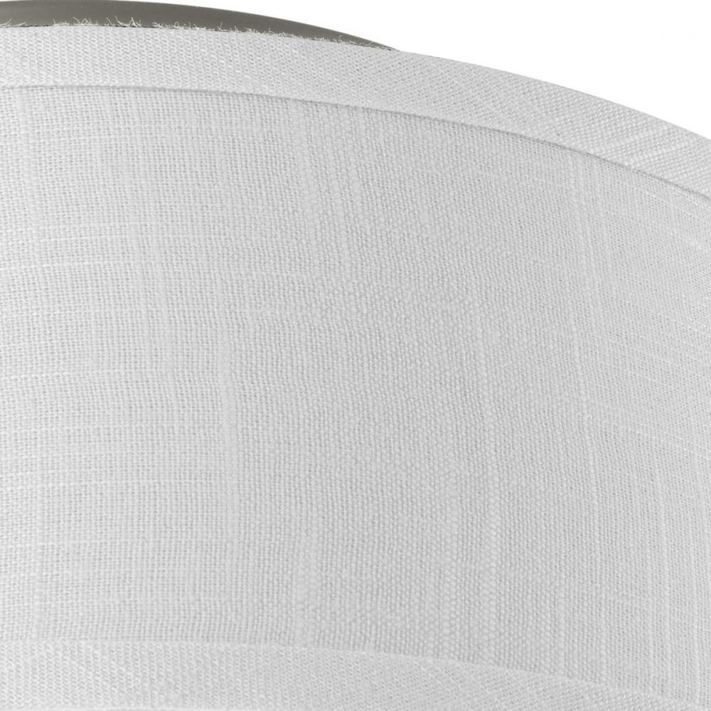 The two-light flush mount from the Arden collection offers a comfortable silhouette that is both rustic and modern. The summer linen shades with etched glass diffuser coordinates with many other Progress Lighting styles like Cherish. This transitional style fixture is finished in Brushed Nickel.