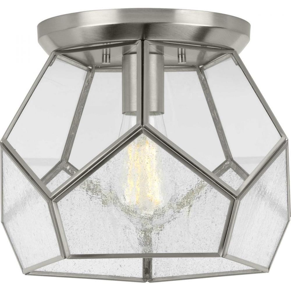 Inspired By Modern Geometric Designs And Contrasting Elements, This Bohemian-Style Flush Mount Is An Attention-Grabber For All The Right Reasons. Geometric Shapes Form From The Brushed Nickel Frame. Glass Panels Create A Shade That Holds An Industrial Light Base Inside.