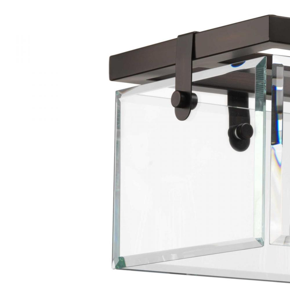 Inspired by modern architecture. Glayse features handsome details for variety of interior design styles. The frameless unbounded beveled glass creates beautiful light and reflection. The structure of Glayse is the focal point of the design, where form follows function. The five-light linear chandelier is complimented by an Antique Bronze finish.