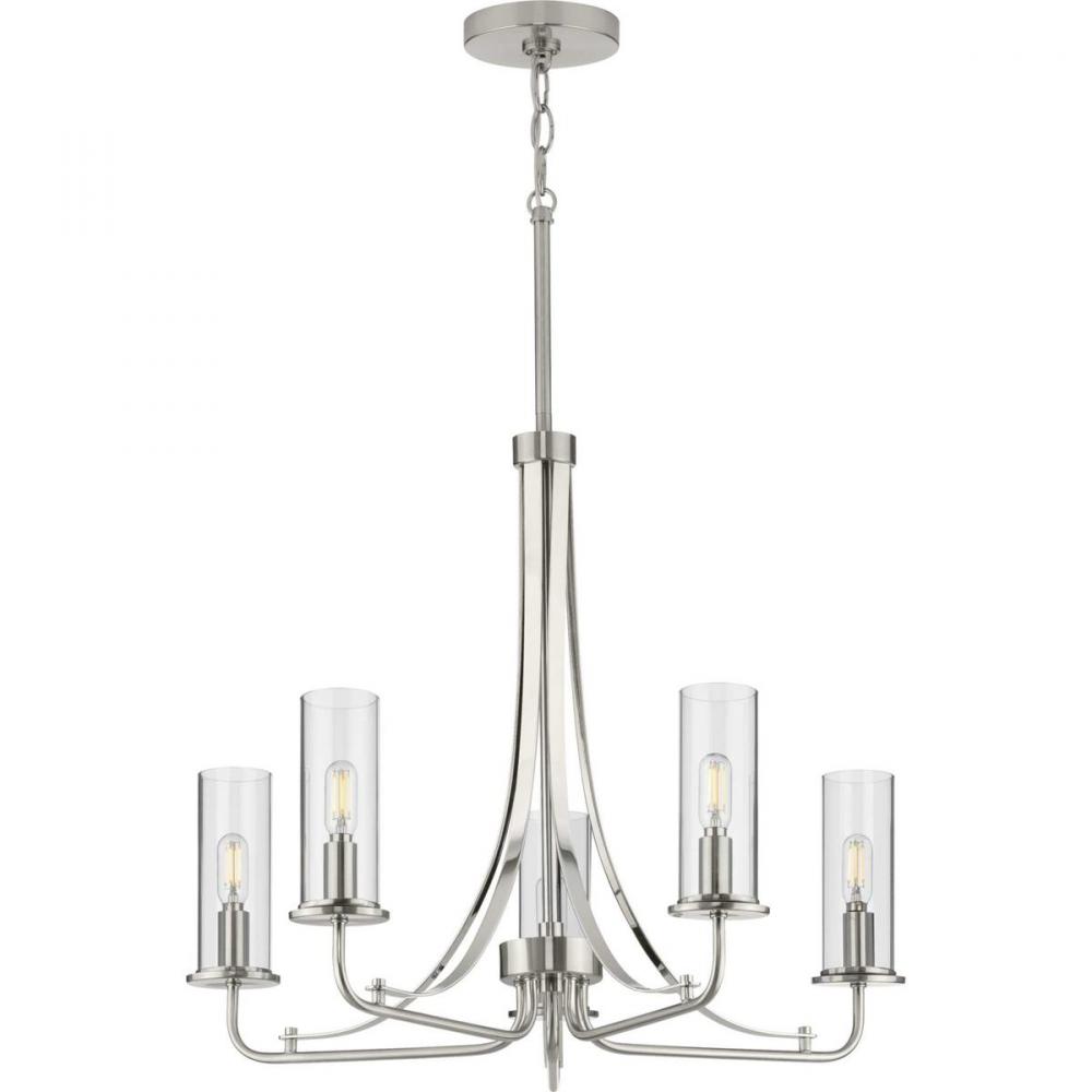 Incorporate A Sleek Simplicity And Natural Beauty With The Riley Collection'S Five-Light Brushed Nickel Chandelier. Clear Glass Shades Are Ready To Offer Stunning, Rejuvenating Illumination. The Shades Rest On A Gorgeous Brushed Nickel Frame That Manifests Feelings Of Tranquility And Serenity.