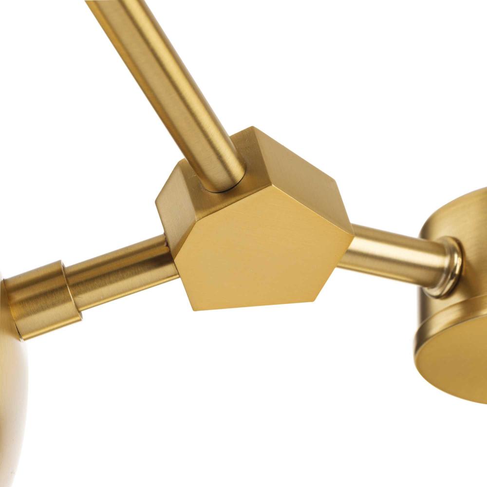 Modern and organic inspirations elegantly meld together in Haas. A bold linear frame branches out to embrace smoothly etched opal glass globes that imbue halls, foyer, kitchens, and breakfast nooks with soft illumination, and fits beautifully into mid-century modern and contemporary settings. This fixture is part of the Progress Lighting Design Series, a lighting collection offering fashionable styles and affordable luxury lighting for the home.