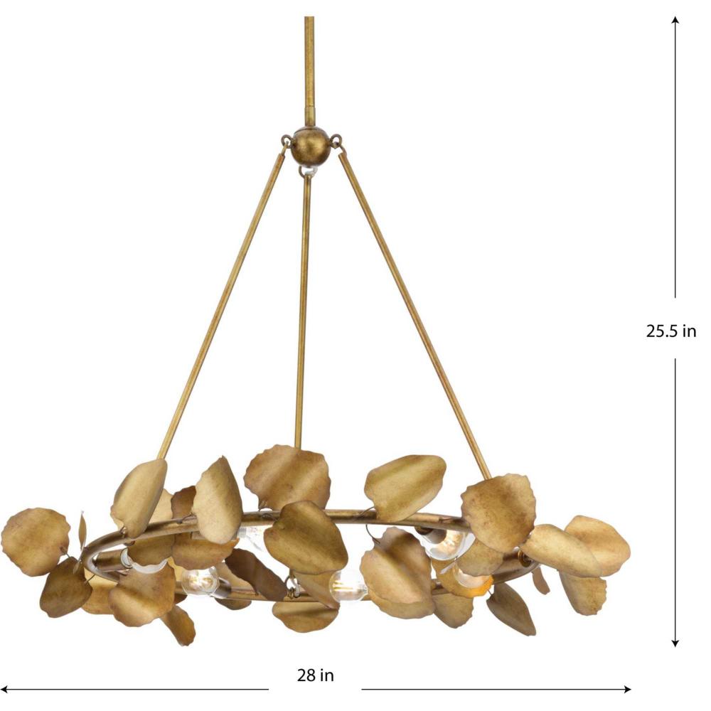 The Laurel Collection seamlessly blends natural beauty with elegant design. Handcrafted, gently curving leaves are finished in a richly blended patina that adds a touch of timeless sophistication.This fixture is part of the Progress Lighting Design Series, a lighting collection offering fashionable styles and affordable luxury lighting for the home.