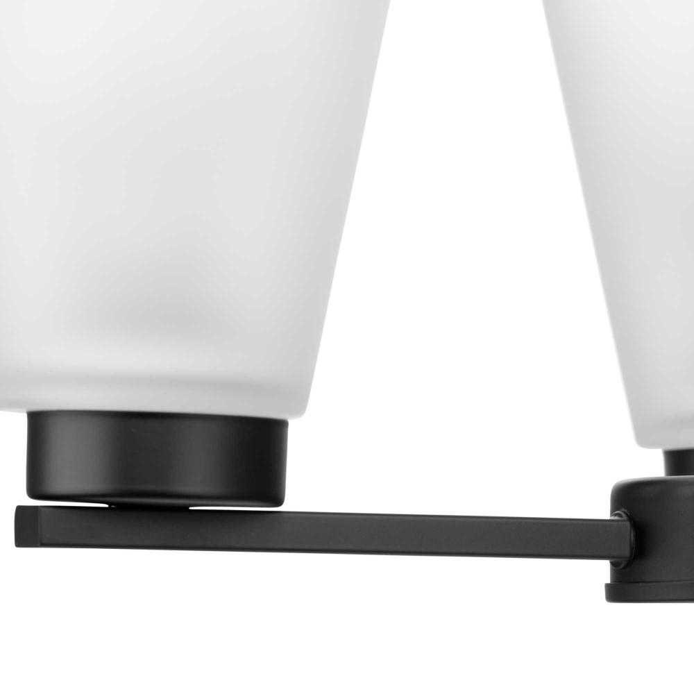 Fill your house with the lively Tanner family of fixtures. Strong lines accent the Matte Black frame in a simple balance of form and function, while soft etched glass shades complement the design. The versatile fixture can be mounted with the shades facing up or down to suit your preference.