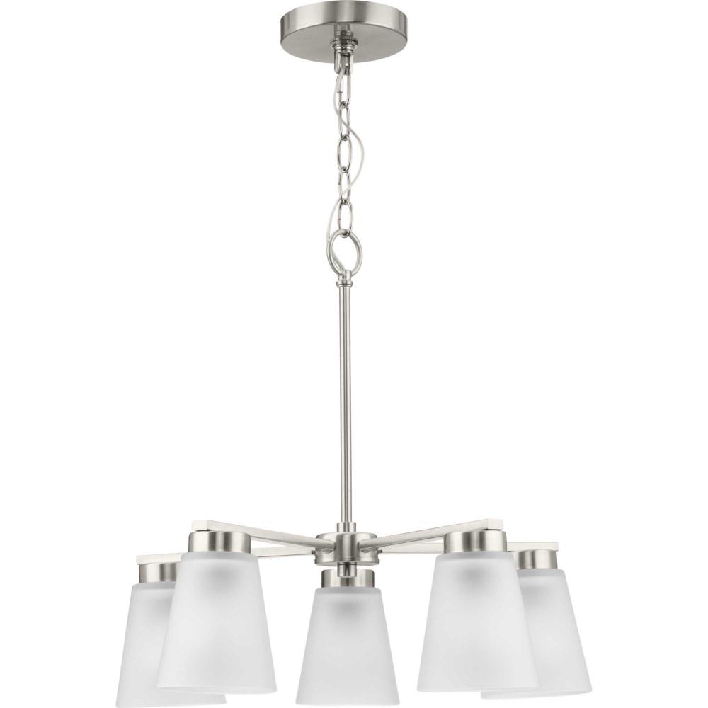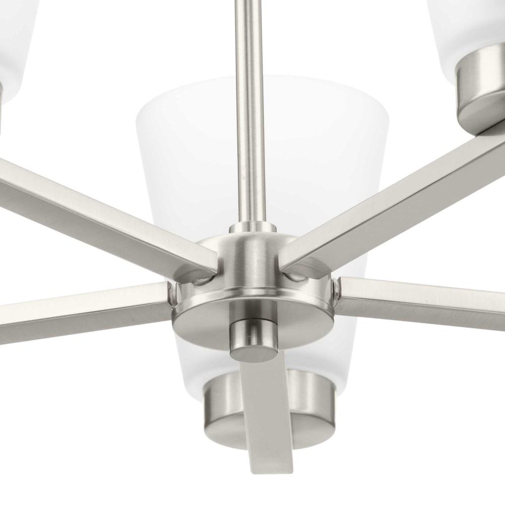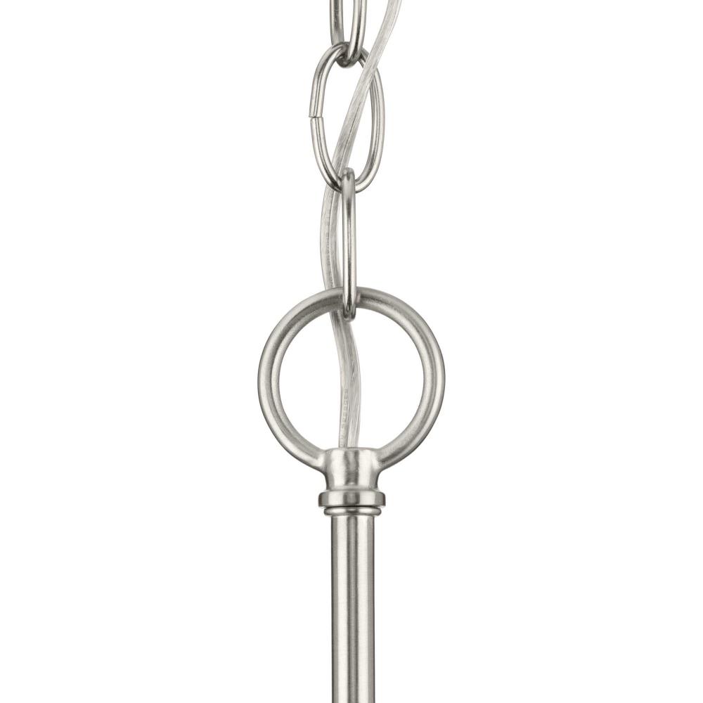 A Brushed Nickel finish emphasizes the fixture's lively design