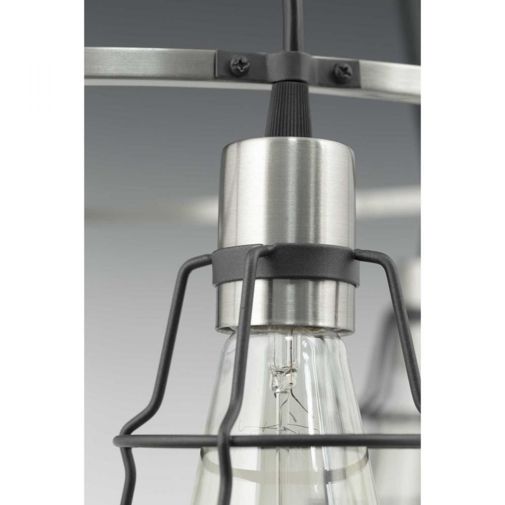 Graphite finish with Brushed Nickel accents.;Industrial inspired design.;Features an open cage with hinged door.;Shown with Vintage lamp (P7825-01).;Brushed Nickel accents.