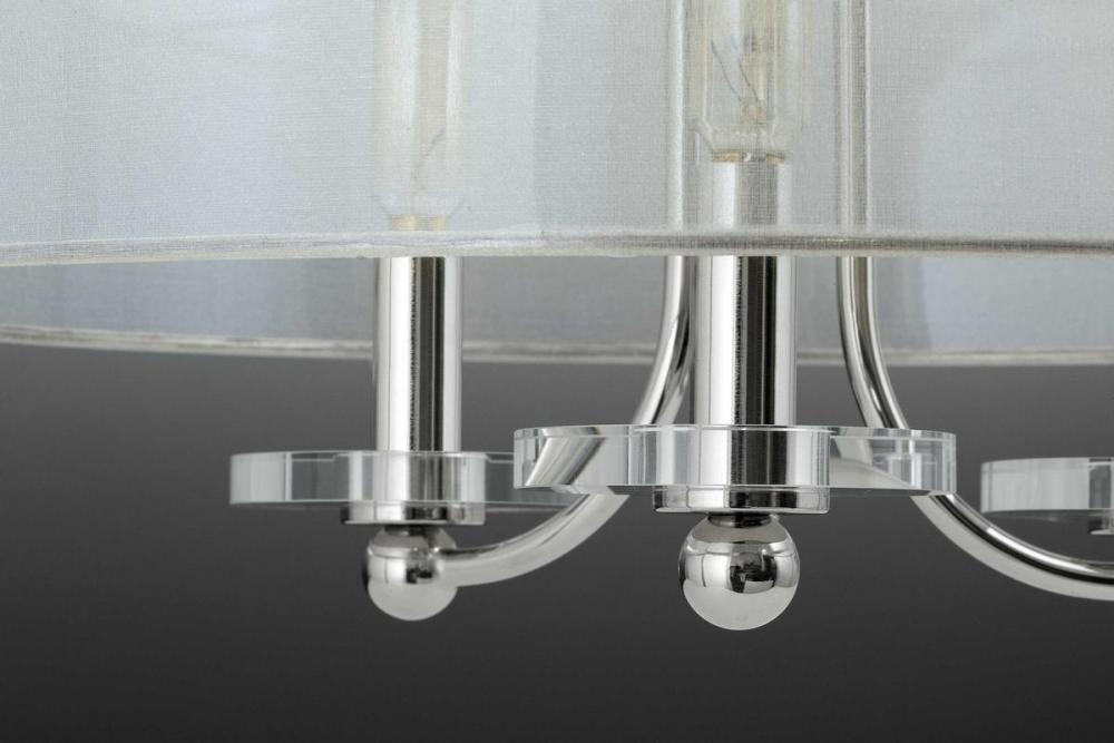 Polished Nickel elements and luxurious sheer silver organza shade.;Clear K9 glass discs;Recreates vintage styles found in Parisian neighborhood markets;Polished Nickel finish.;Part of the Design Series Collections offering high style and design.