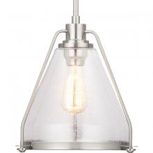 Range features a classic triangular clear seeded glass shade. The simple geometric glass is outlined with a Polished Nickel slender frame and finished with a bottom metal accent ring. Simple and stylish, this versatile style is suitable for a variety of designs, such as Modern, Farmhouse and Urban Industrial.