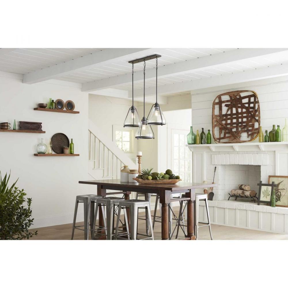 Range features a classic triangular clear seeded glass shade. The simple geometric glass is outlined with a Graphite slender frame and finished with a bottom metal accent ring. Simple and stylish, this versatile style is suitable for a variety of designs, such as Modern, Farmhouse and Urban Industrial.