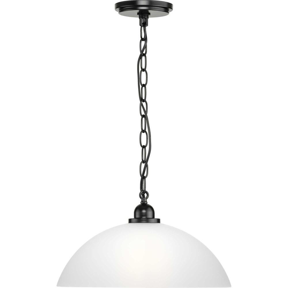 The elegantly simple design of the glass dome pendant complements a wide array of home styles. A classic form, the pendant is etched glass with a dome top finished in crisp matte black that is ideal for kitchens and breakfast nooks in traditional and transitional settings.