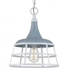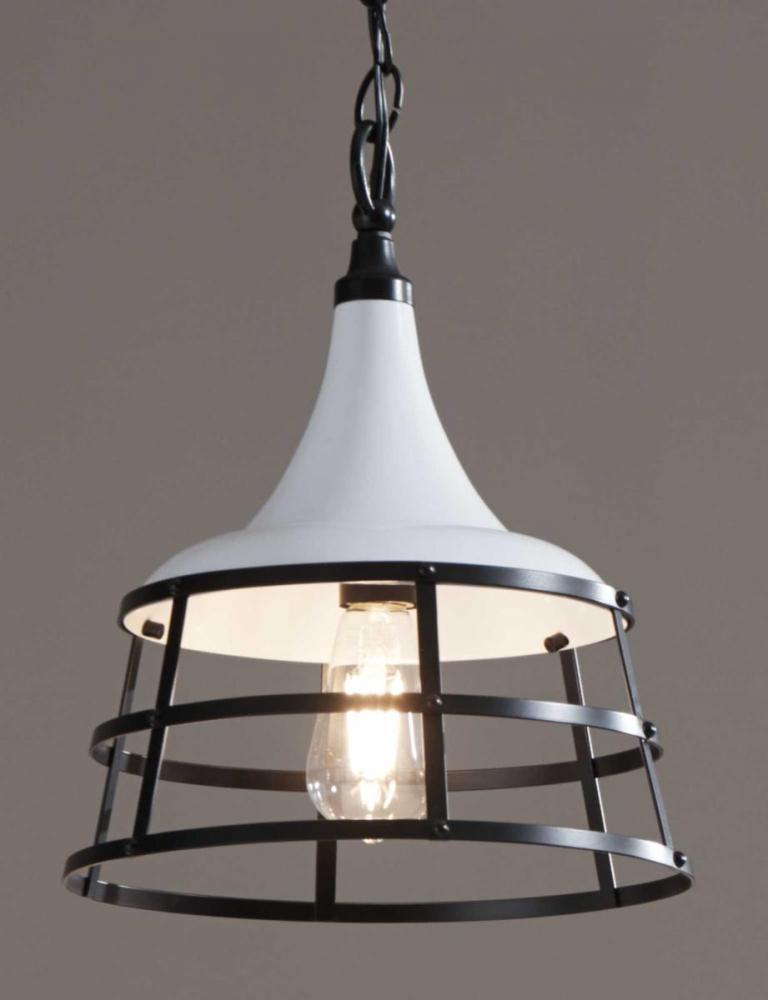 Mini-pendant gushing with rustic farmhouse charm.;A country basket shade is coated in a black farmhouse-inspired finish.;A metal covering coated in a crisp white finish contrasts with the black basket shade.;Ideal for any foyer, kitchen, or dining room.;Pe