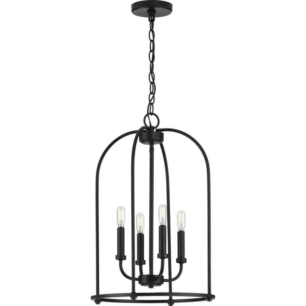 Complement your interiors with the Leyden Collection 4-Light Matte Black Farmhouse Foyer Pendant Light. The gorgeous open-frame and candlestick light bases are coated in a beautiful matte black finish. Light sources glow from atop the smooth light bases for graceful illumination.