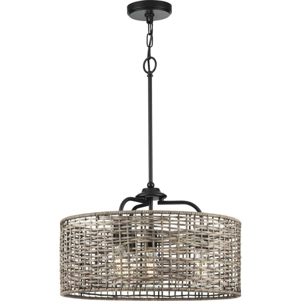 Artistry and texture combine in the Lavelle Collection 4-Light Natural Rattan Global Pendant Hanging Light. A softly curved matte black frame complements the airy open weave of the earthy, mocha-colored rattan shade. Light sources glow from within the organic shade for a carefree aesthetic.