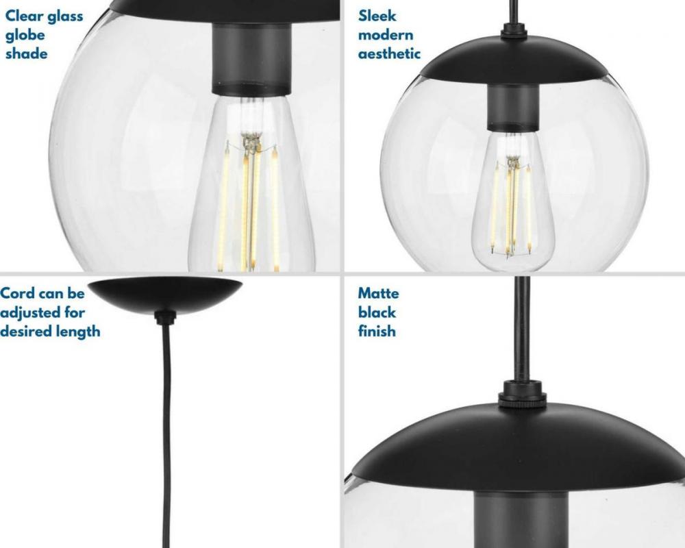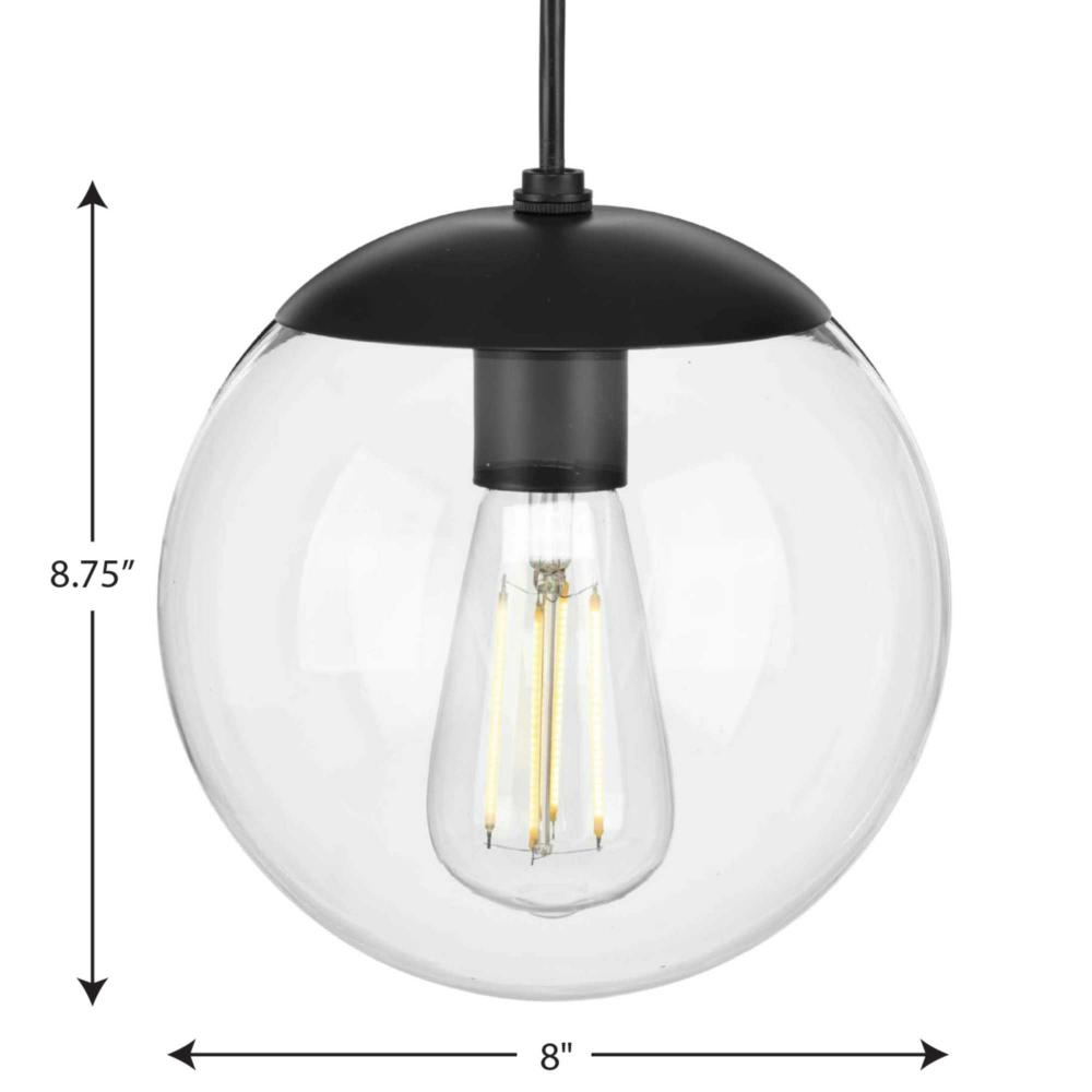 Embrace a statement-making lighting design with the Atwell Collection 1-Light Glass Globe Matte Black Modern Pendant Light. A light source glows from within a clear glass globe shade that fosters a soft and enduring design. The metal cap and light base are coated in a beautiful matte black finish that accentuates the hanging light's modern aesthetic.