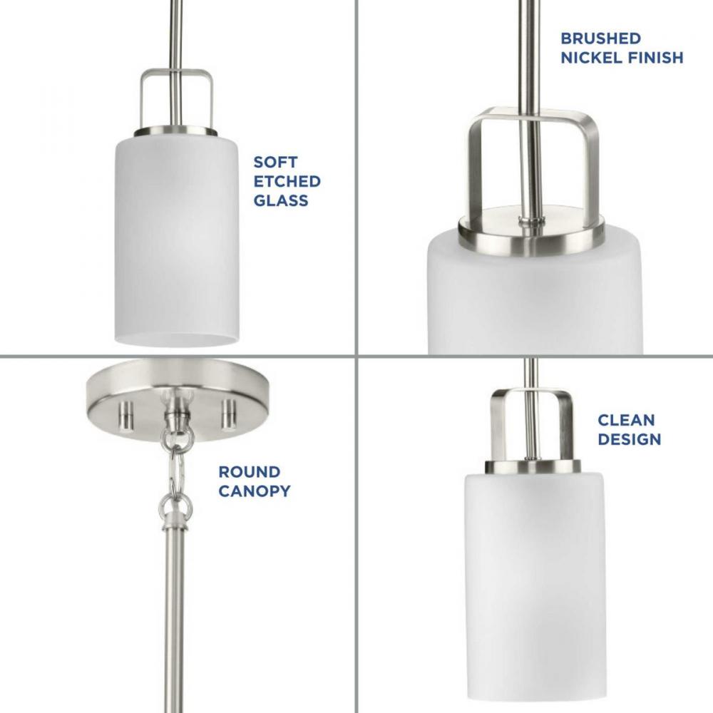 APPLICATION: Distinguish your home with clean modern design with the League Collection One-Light Brushed Nickel and Etched Glass Contemporary Mini-Pendant Hanging Light ideal for any kitchen island, dining room table, foyer, entryway, breakfast nook, or ho