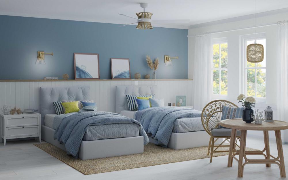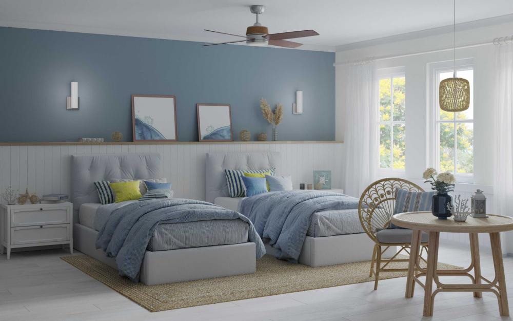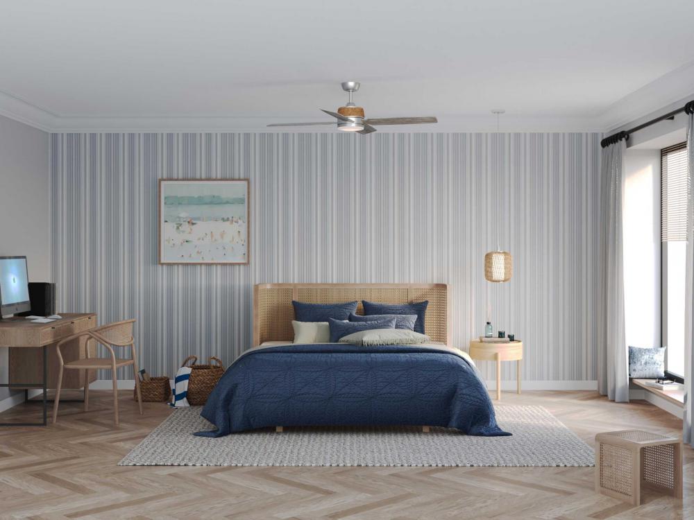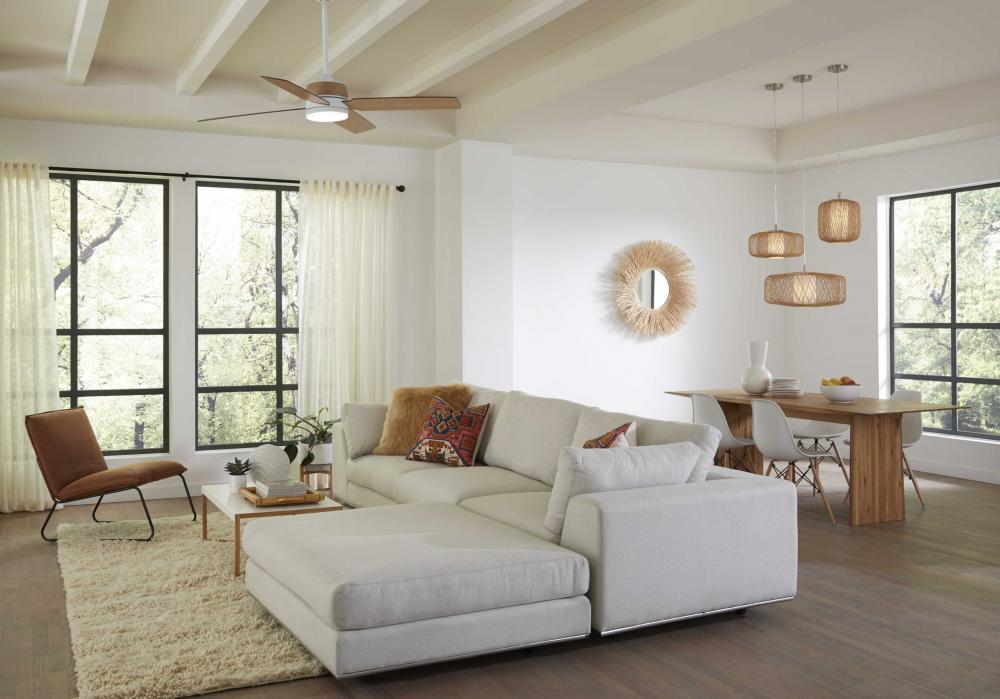Includes 120 in of clear/silver cord for a variety of ceiling heights and can be used on a sloped ceiling