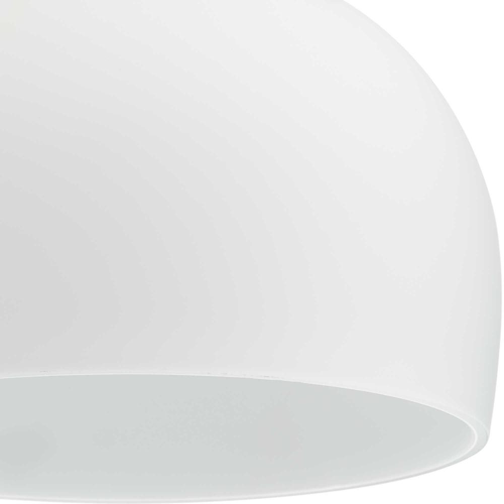 The etched glass shade is held by a cord suspension, offering a stylish modern touch