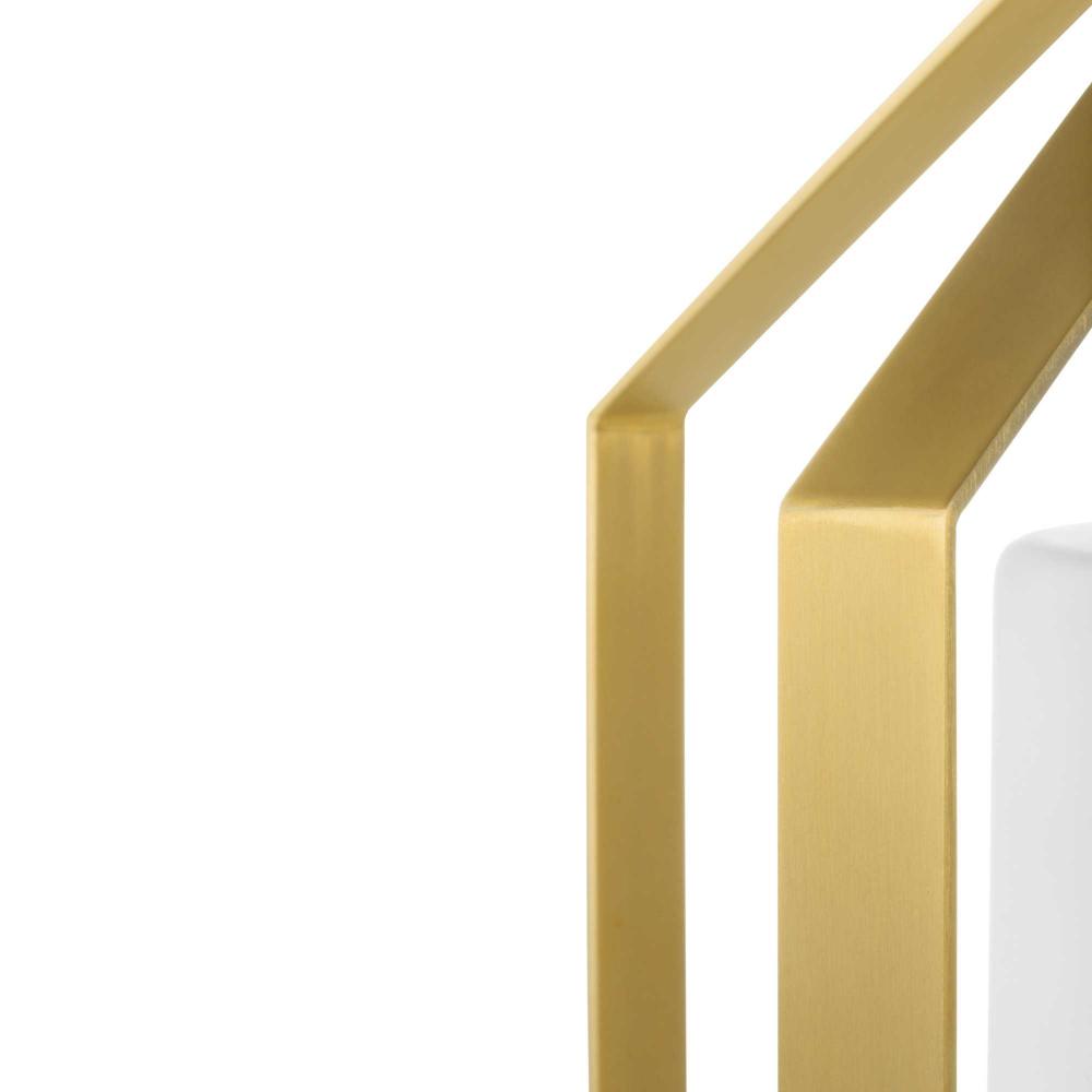 A lovely brushed gold frame define the fixture's distinct, angular silhouette