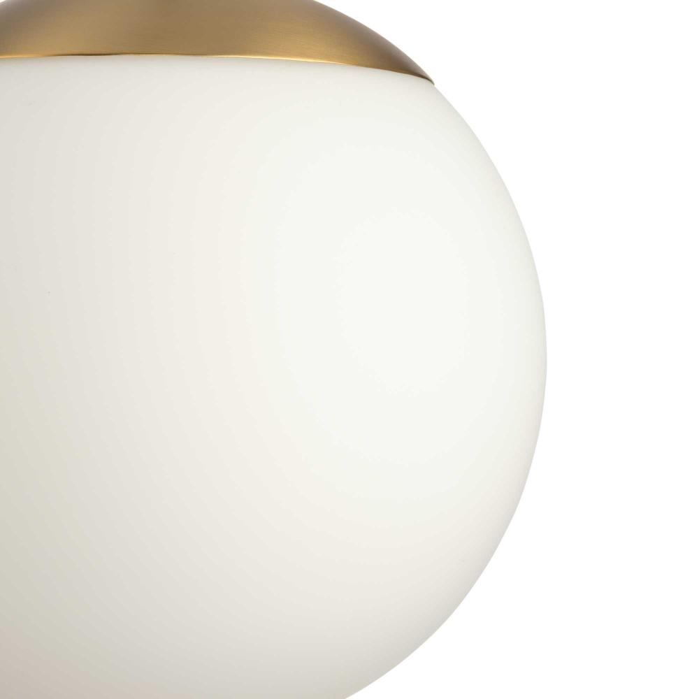 A light source glows from within a opal glass globe shade that fosters a soft and enduring design