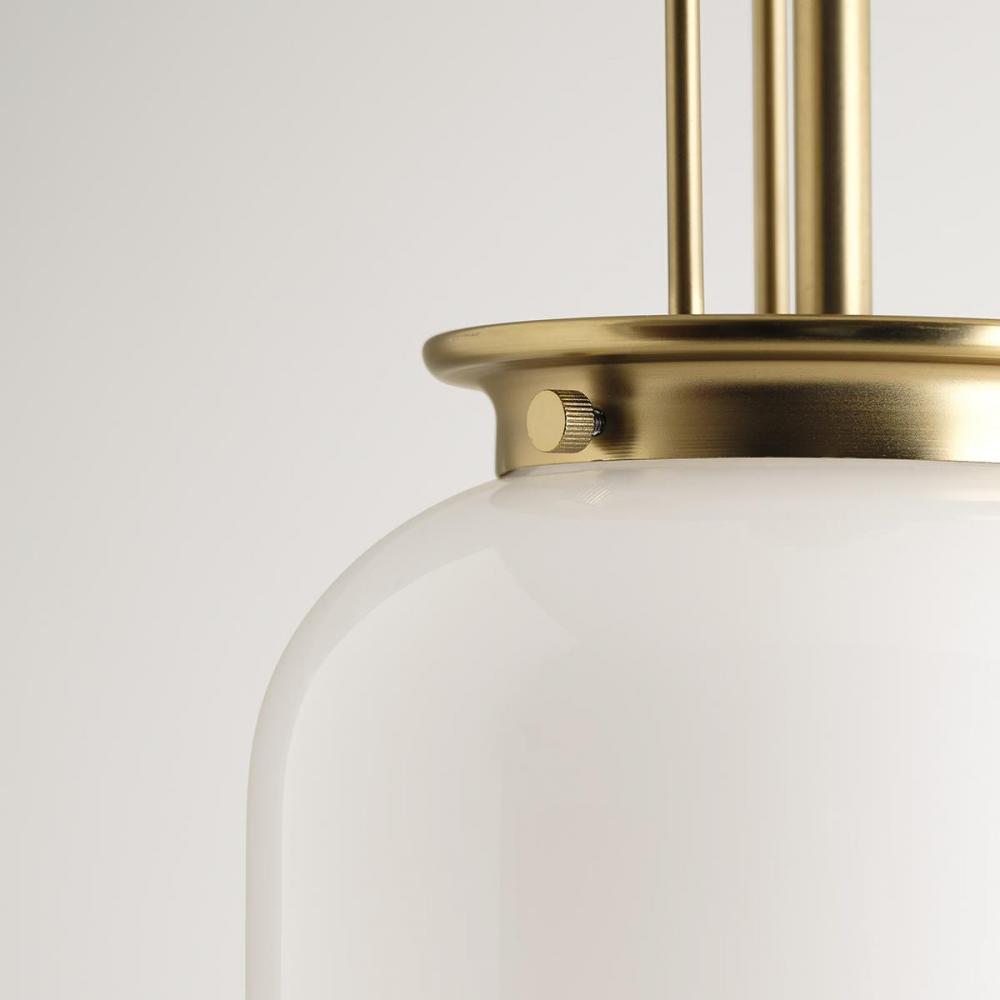 A polished capsule-shaped white marble glass shade diffuses a soft, radiant glow
