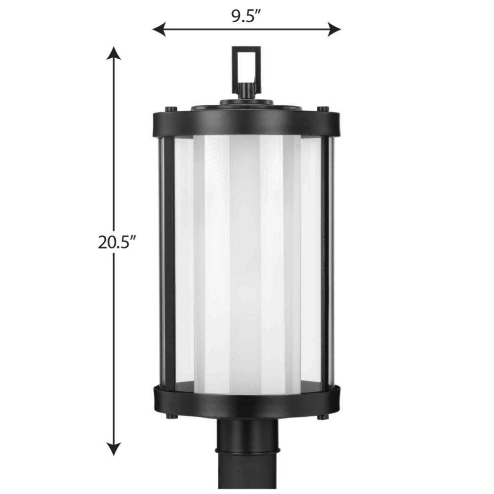 Incorporate memorable modern lighting with the industrial Irondale Collection’s One-Light Black Post Lantern. A matte black frame features a decorative rectangular design on its top. A clear glass shade holds an etched glass diffuser ready to provide a lovely ambient glow.