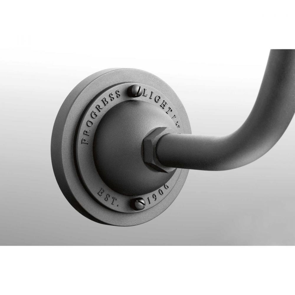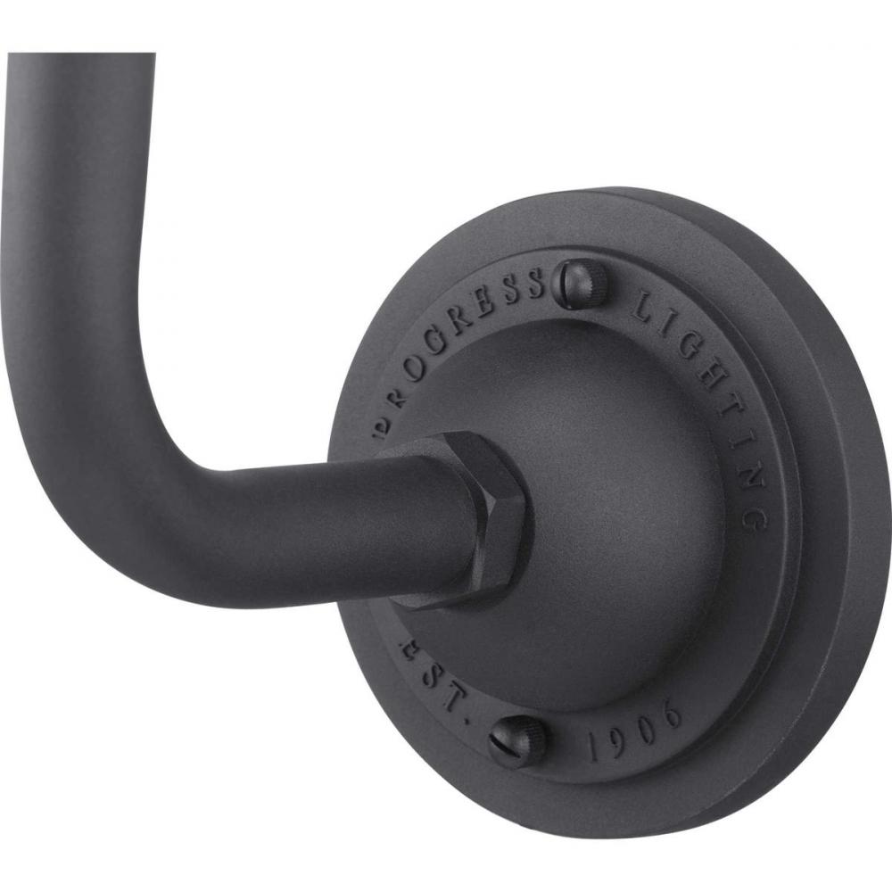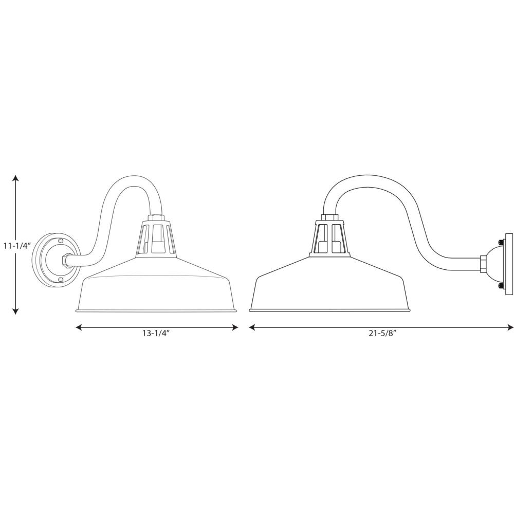 A black gooseneck arm gives a burst of personality to this traditional metal warehouse shade;The large wall lantern can be mounted indoors or outdoors;A fun way to perk up a space when hung on either side of a front or rear door, by a garage, or in rec roo
