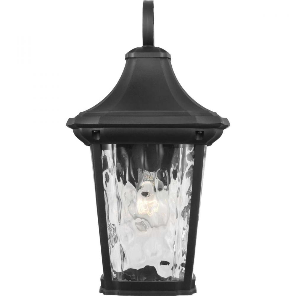 This wall lantern is a go-to choice when incorporating classic silhouettes with a farmhouse flair into your home décor vision. The traditional frame is constructed with non-metallic, corrosion-resistant composite polymer in a classic black finish. A beautiful water glass shade adds charming character to the timeless design. DURASHIELD by Progress Lighting is built to last. Constructed from a composite material with UV protection, DURASHIELD holds up even in the harshest weather conditions. This high-performance finish has a 5-year warranty and is resistant to rust, corrosion, and fading.