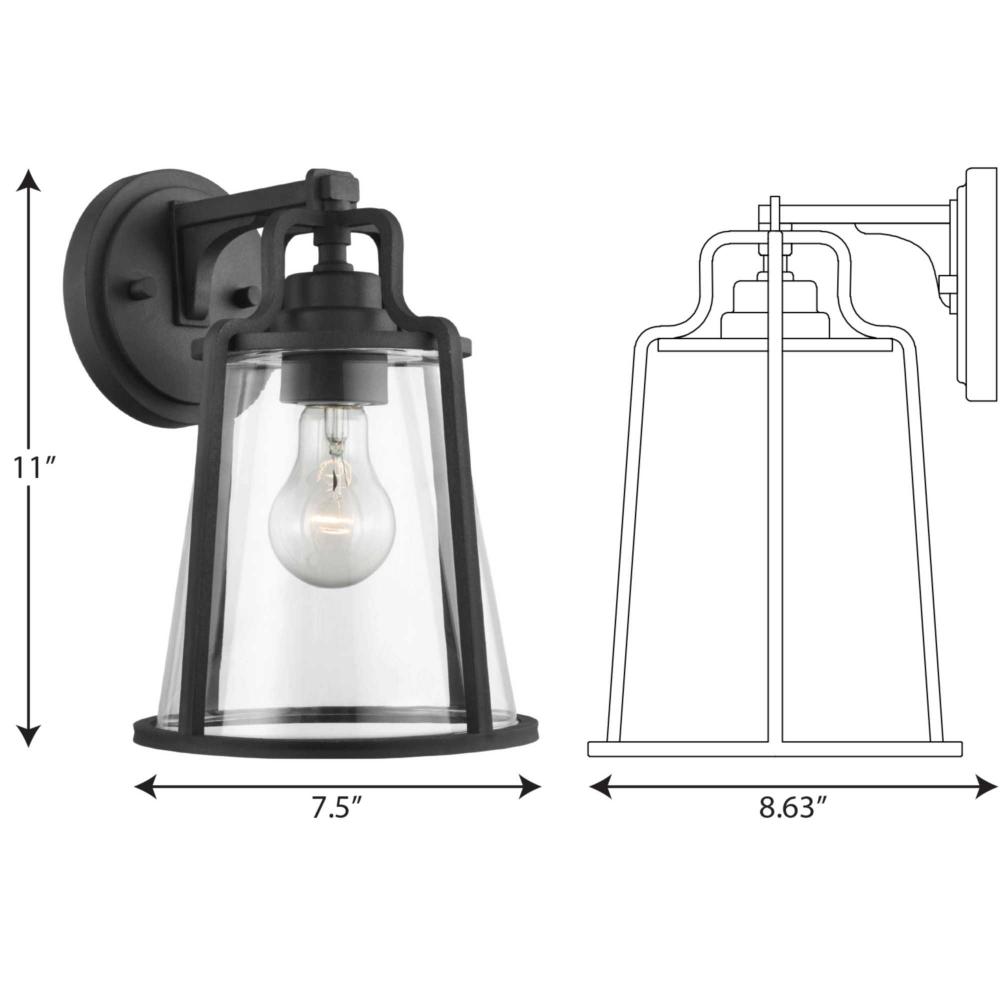 This Wall Lantern Is Expertly Crafted With That Casual, Coastal Style You Love. A Clear Glass Shade Shields A Simple Light Base For A Seaside-Living Vibe. The Shade Is Cradled Inside An Open-Cage Black Frame Featuring Thin Bars And Constructed With A Composite Polymer, Corrosion-Resistant Housing. Durashield By Progress Lighting Is Built To Last. Constructed From A Composite Material With Uv Protection, Durashield Holds Up Even In The Harshest Weather Conditions. This High-Performance Finish Has A 5-Year Warranty And Is Resistant To Rust, Corrosion, And Fading.