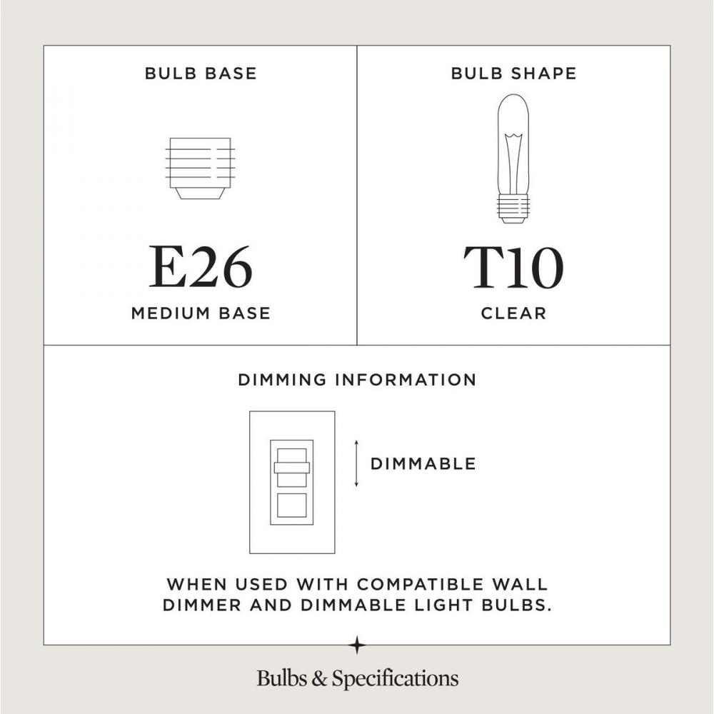 Uses (1) 60-watt max medium base bulb or LED equivalent, that is sold separately, and dimmable when used in conjunction with a dimmable bulb