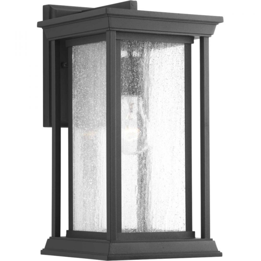 One-Light medium wall lantern with a Craftsman-inspired silhouette, Endicott offers visual interest to your home's exterior. The elongated frame is finished with clear seeded glass.
