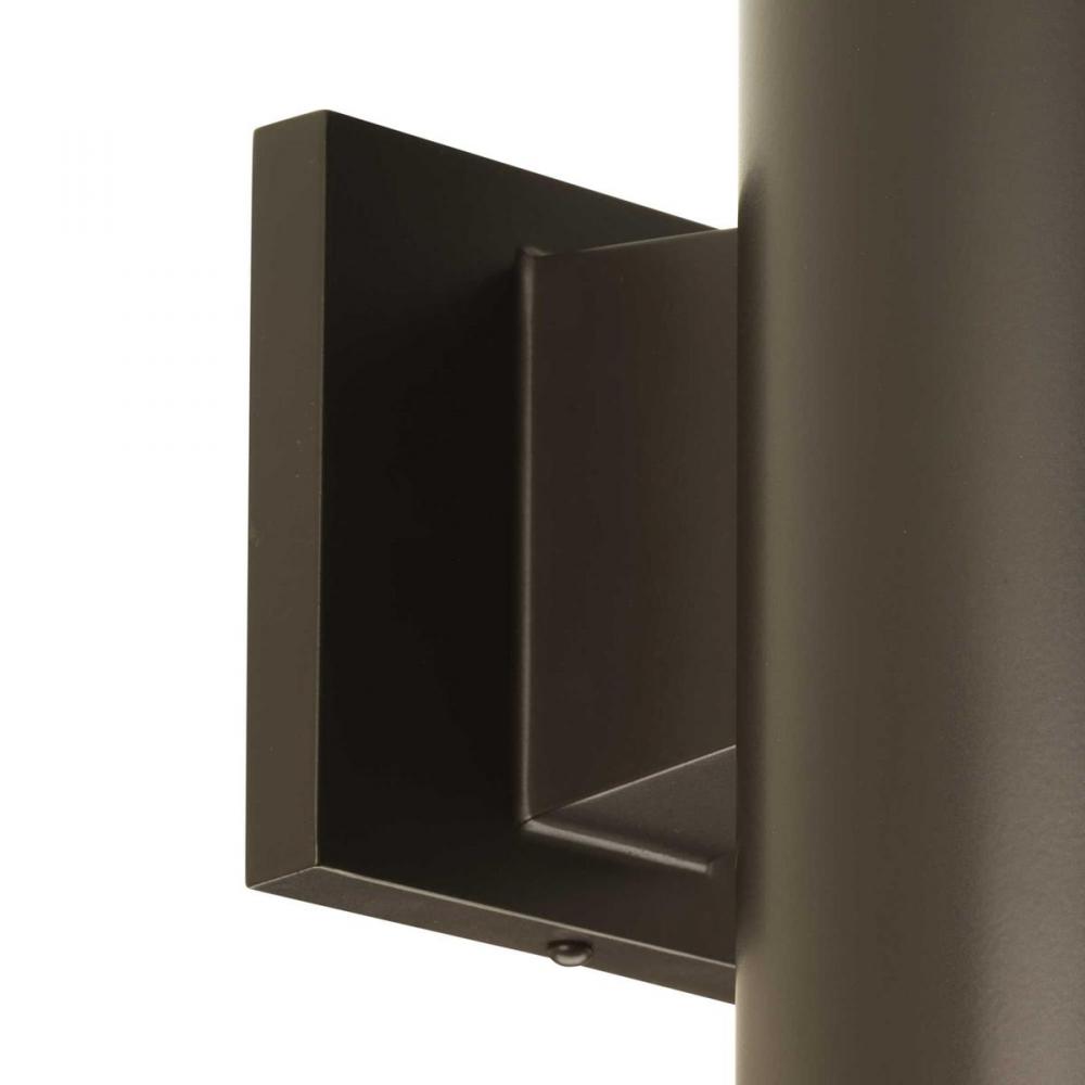 6" uplight/downlight wall cylinders are ideal for a wide variety of interior and exterior applications including residential and commercial. The aluminum Cylinders offers a contemporary design with its sleek cylindrical form and elegant Antique Bronze finish, perfect for today's inspired exteriors. Modern details feature a die-cast aluminum wall bracket and heavy-duty aluminum framing - resulting in an impeccable modern accent that adds panache and sophistication to your outdoor spaces. Provides even illumination up and down.