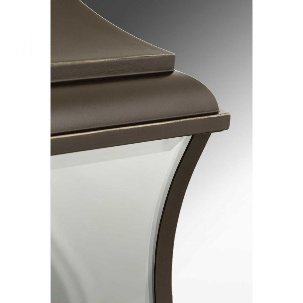Enjoy the simple elegance of traditional styling in this one-light wall lantern. Township's clear beveled glass and Oil Rubbed Bronze finish contains notes of New England-inspired style for this new outdoor lantern collection.