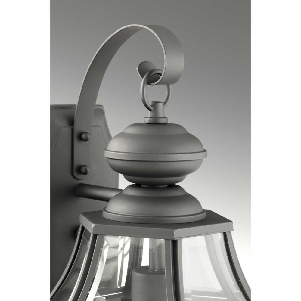 A Black finish complements clear beveled glass in the New Haven outdoor large wall lantern. Durable aluminum construction. Open bottom design allows easy access to replace lamps without removing any pieces. Post, hanging and wall options are available.