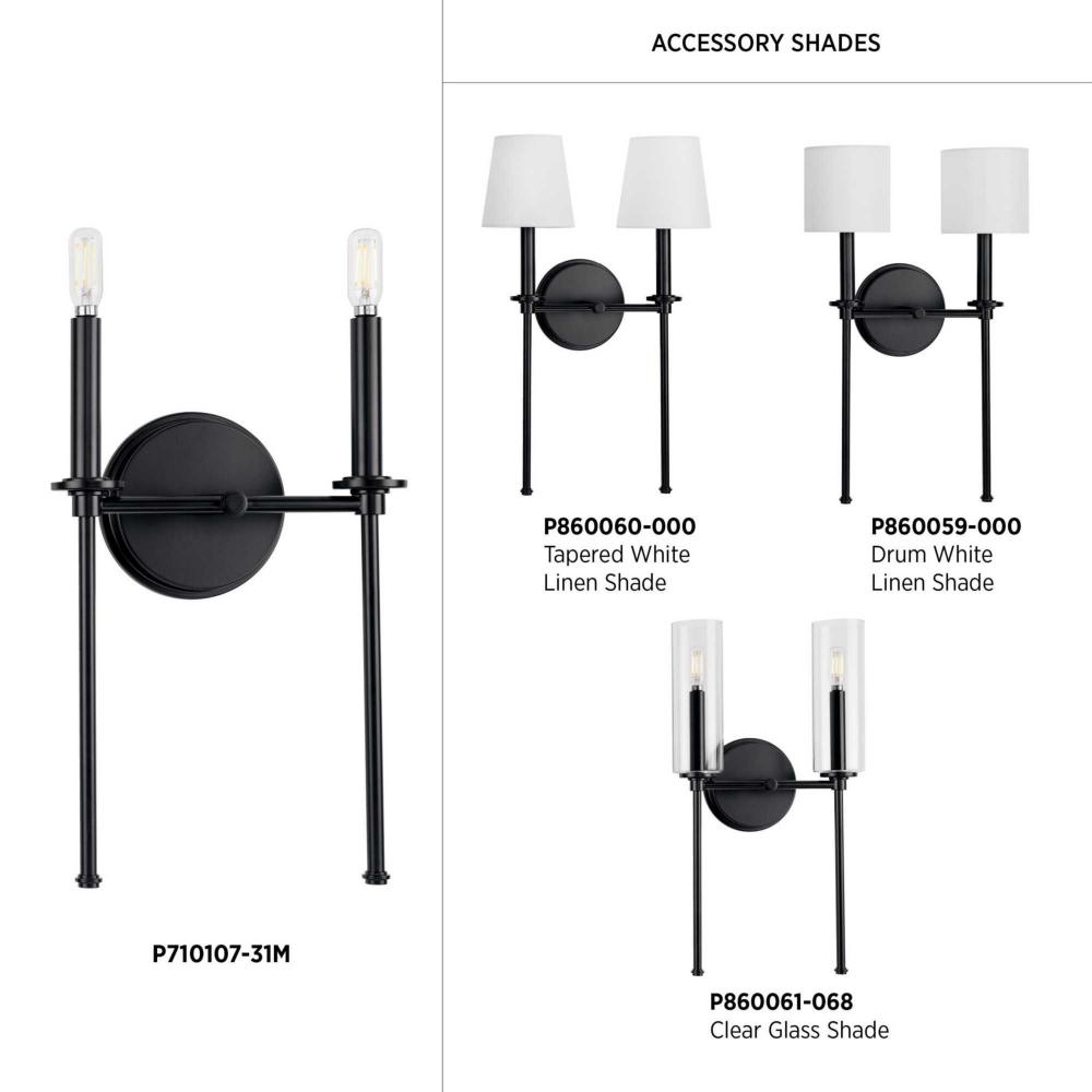 Feature a chic form with a bath vanity light from the Elara Collection. The slender frame with a stylized finial inspired by chess pawns is coated in a beautiful matte black finish. For additional customization, Elara can be topped by a tapered or drum fabric shade or a clear glass cylinder.