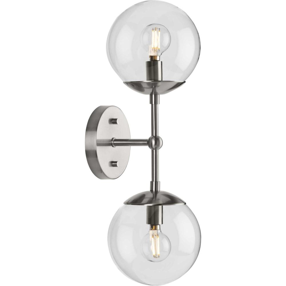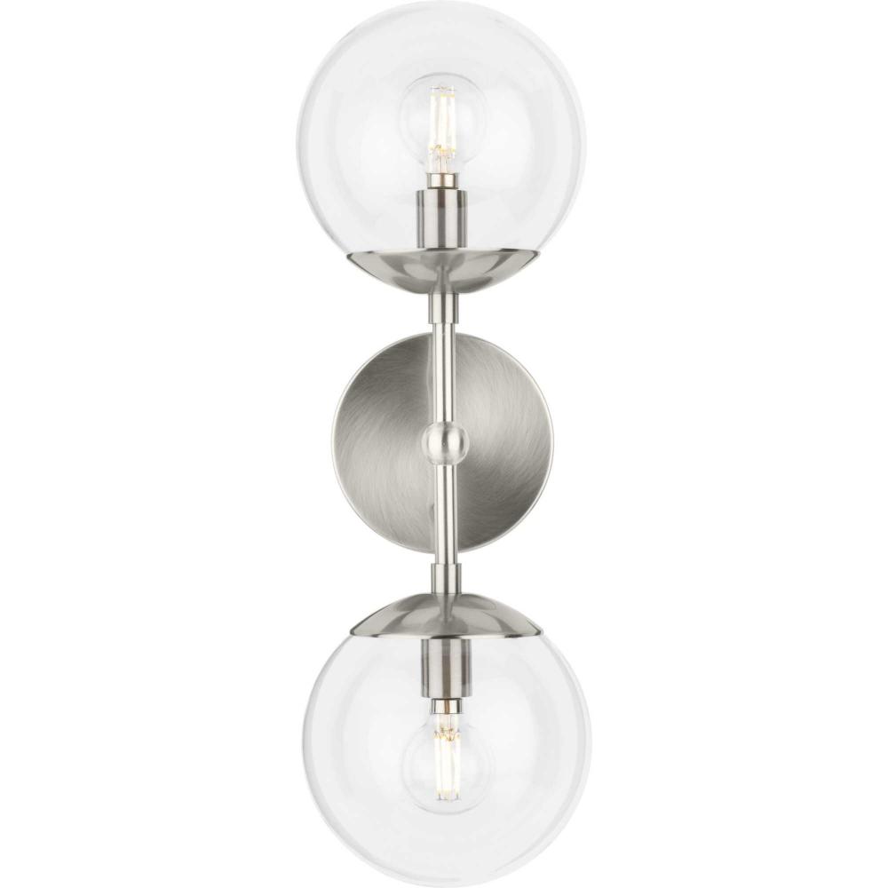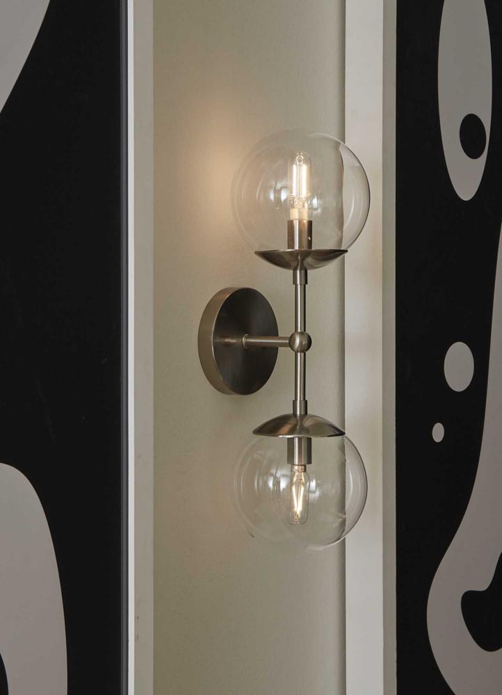 Long lines ending in clear glass globe shades define the modern aesthetic of the Atwell Wall Sconce. One central stem is capped by clear glass, creating bright illumination from the light source glowing within. Atwell fits beautifully into mid-century modern and contemporary settings, delivering accent illumination to bedrooms, bathroom vanities, dining and living rooms. This versatile fixture can be mounted vertically or horizontally as desired.
