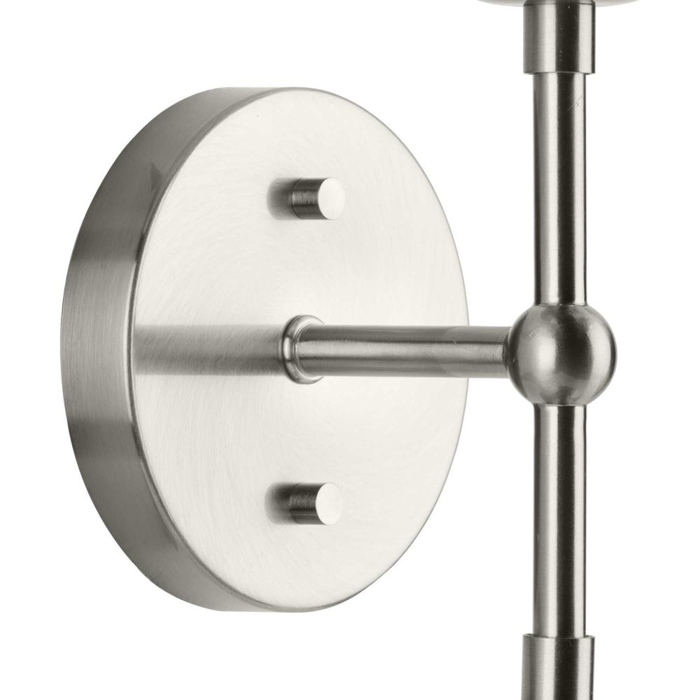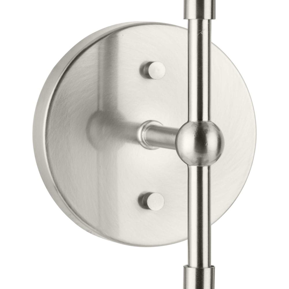 The fixture is coated with a brushed nickel finish, enhancing its modern design