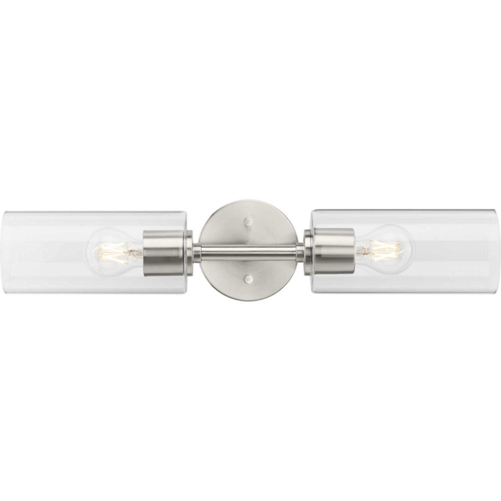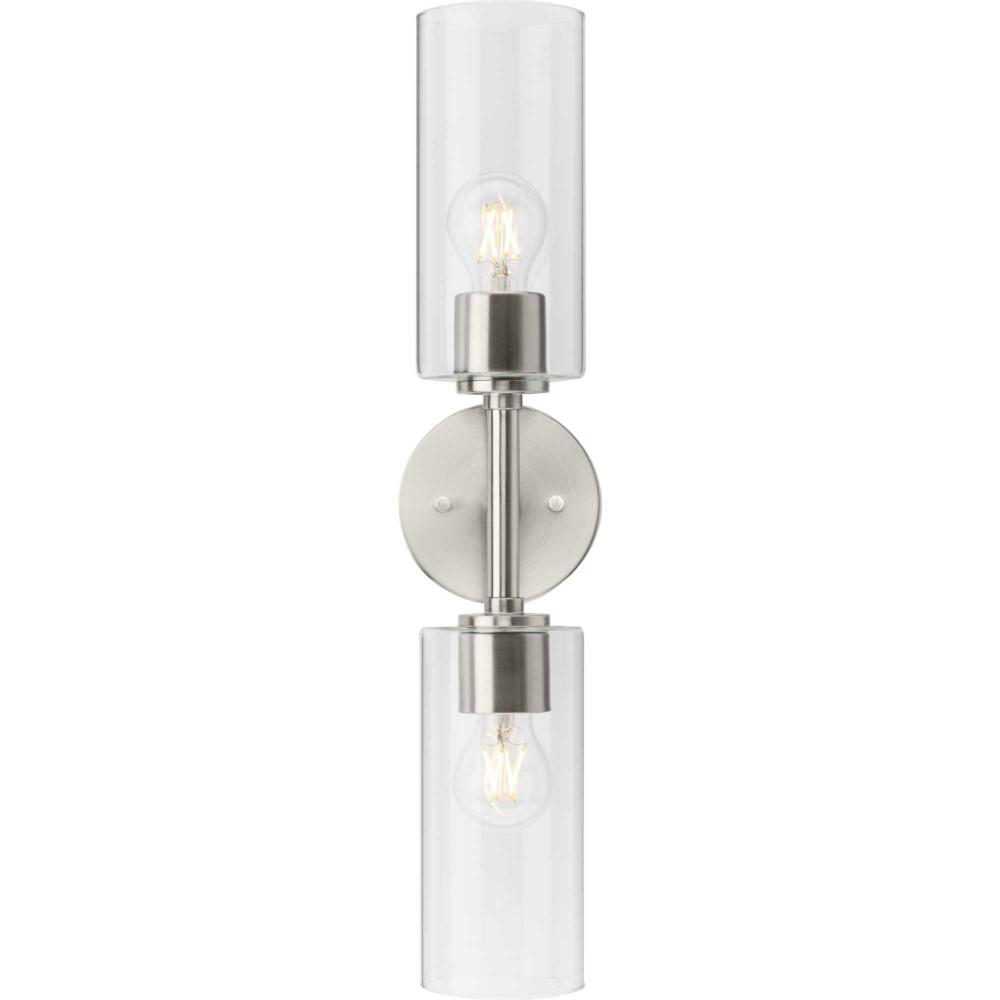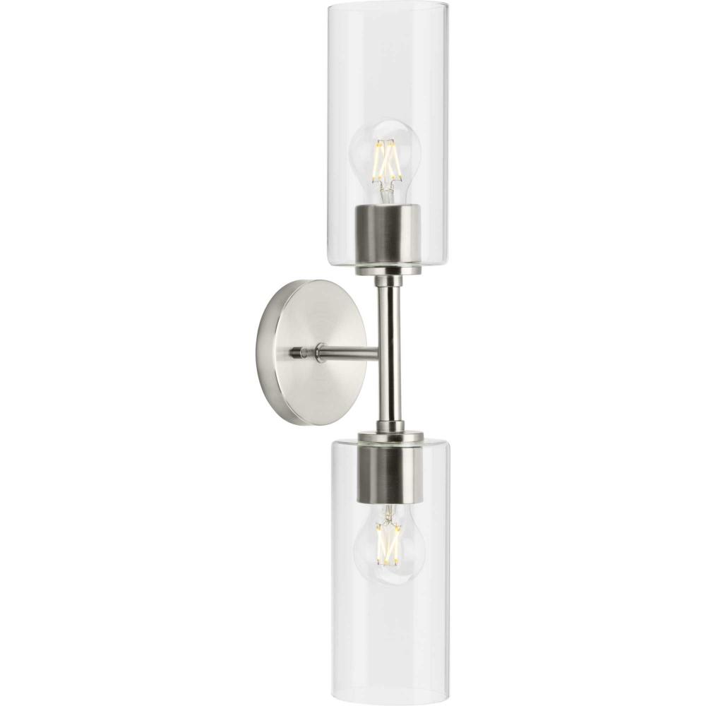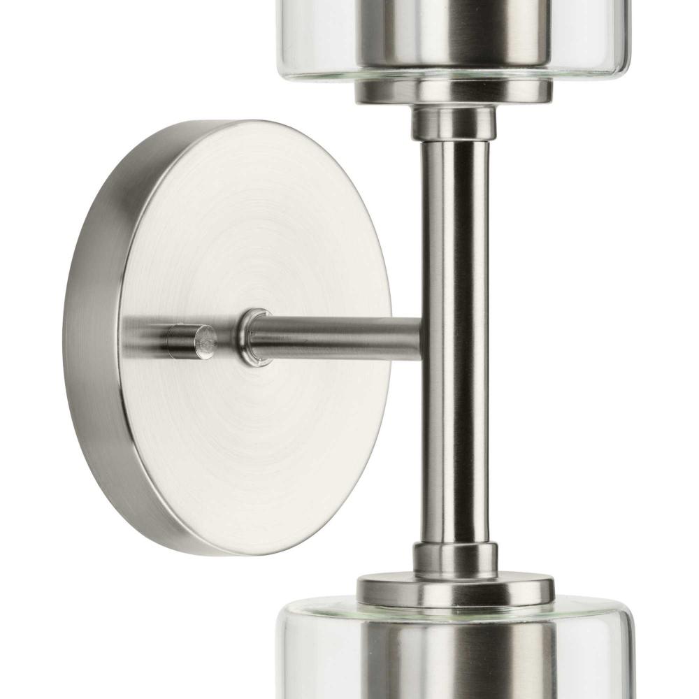 The fixture is coated with a subtle brushed nickel finish, offering an elegant contemporary design to transitional settings
