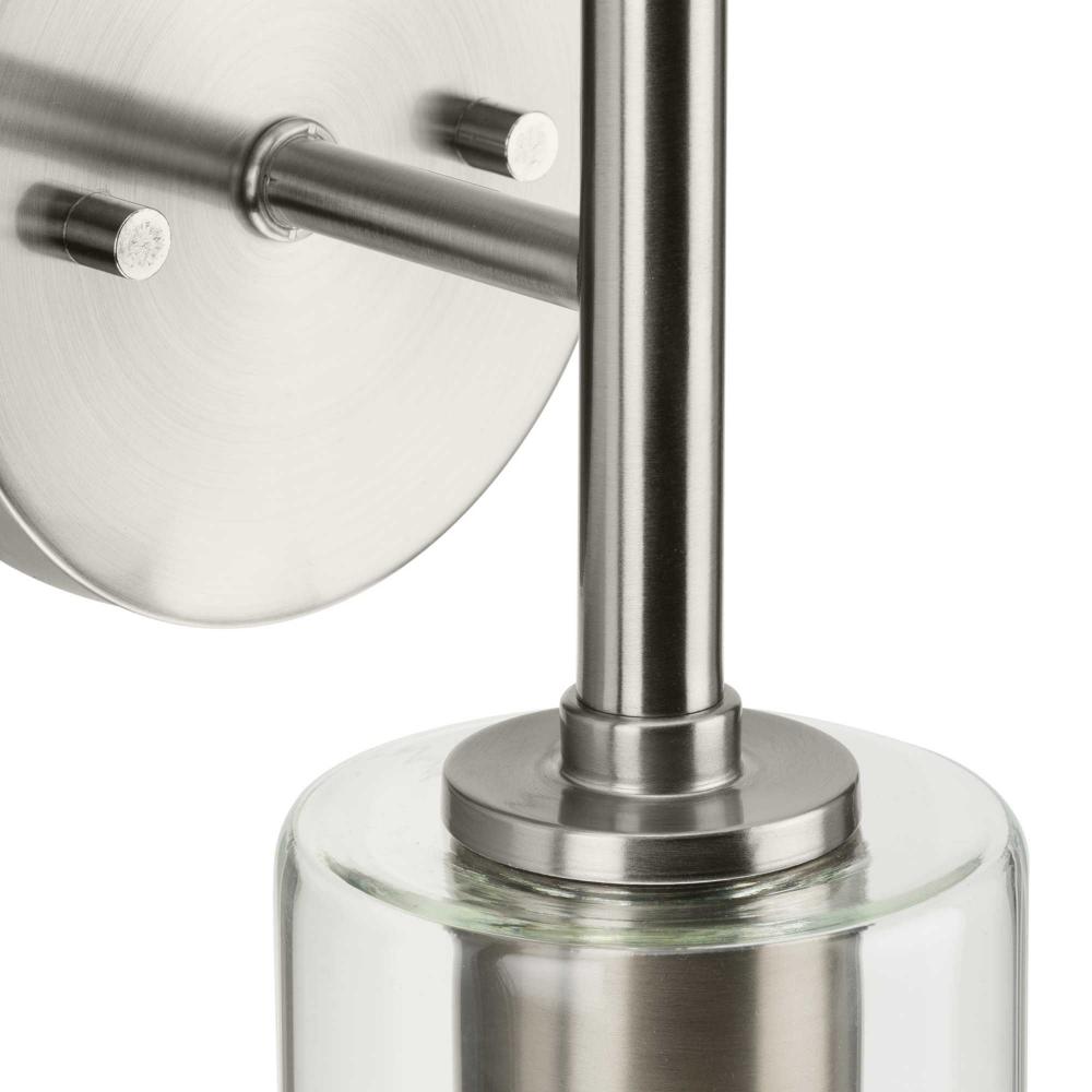 Showcasing understated elegance, the Cofield Wall Bracket features a slender, clean design. The wall sconce is accented by a metal stem and a cylindrical glass shade, Cofield provides contemporary style to mid-century modern and transitional settings, delivering ambient illumination to bathrooms, bedrooms and living rooms. Mount the light fixture with the glass facing up or down for more design flexibility.
