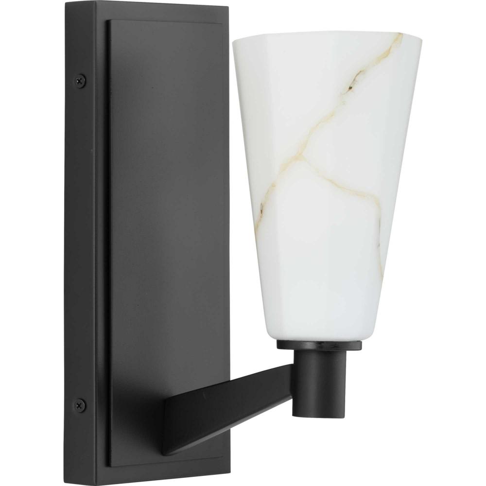The Tosca Collection exudes a sense of motion from a gracefully tapered arm that transcends traditional design boundaries. The Matte Black wall light holds a geometric glass shade crafted with a faux alabaster finish that radiates patterns of light and shadow, adding depth and warmth that enchant any room. This fixture is part of the Progress Lighting Design Series, a lighting collection offering fashionable styles and luxury lighting for the home.