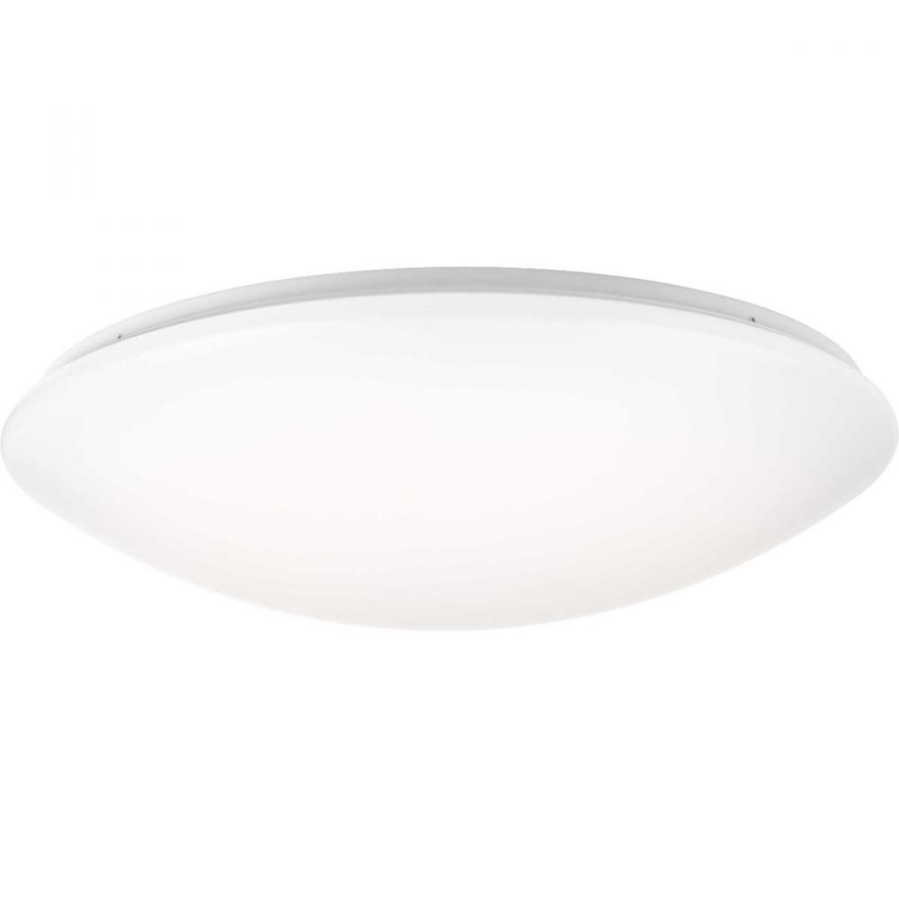 White acrylic diffuser;Twist on installation.;Wall or ceiling mount;White finish;3000 lumens, 93.8/lumens per watt (delivered);3000K color temperature, 90+ CRI;Damp location listed;Dimmable to 10% with many Forward Phase (Triac) or Electronic Low Voltage (