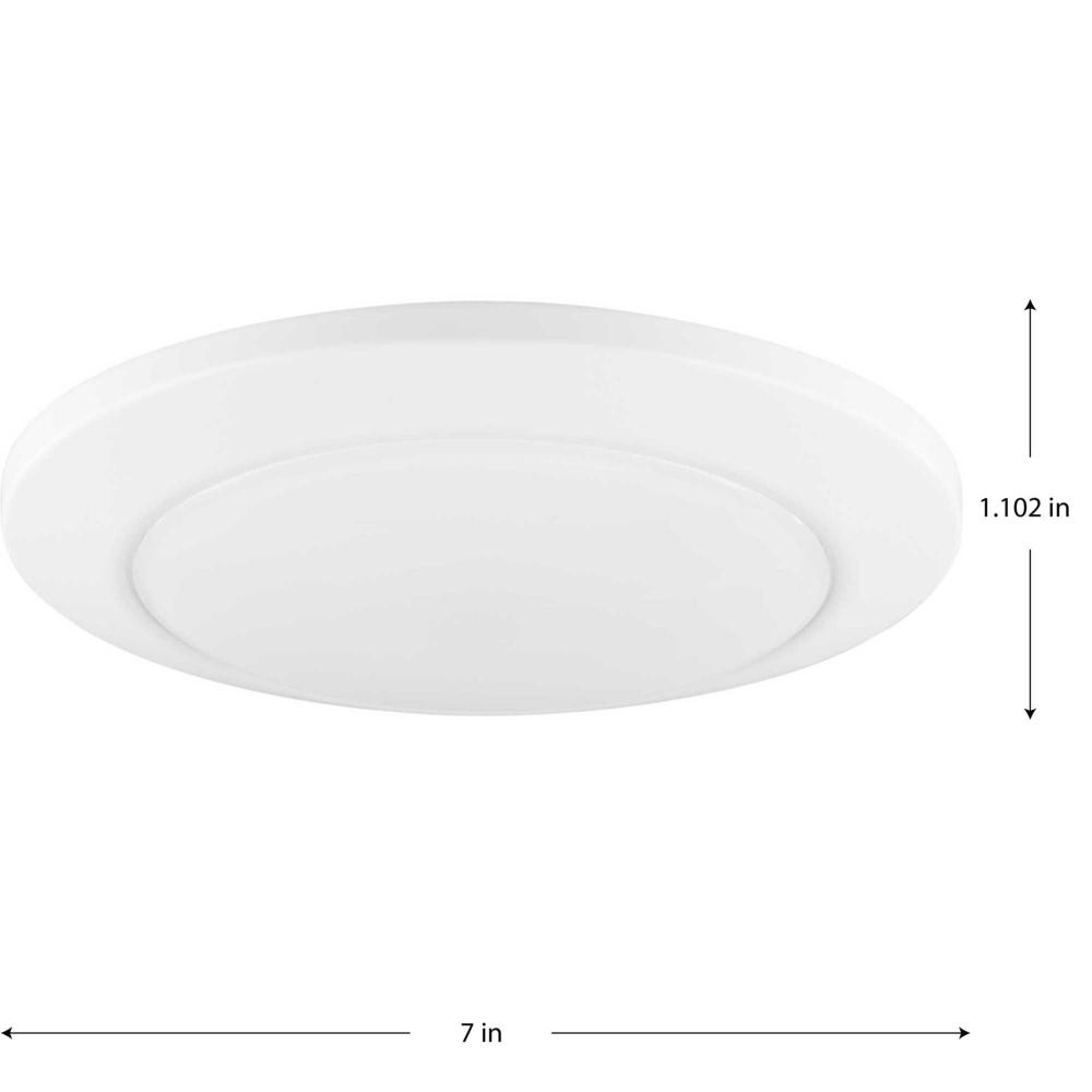 The Fairway 7 in. Surface Mount LED Light combines sleek design with value-driven functionality. Its durable metal trim is coated in a clean white finish paired with a glare-free polycarbonate lens. A 1000- lumen light engine delivers a total of 850 lumens of 3000K, 90 CRI illumination that is dimmable using TRIAC systems and is CA Title 24 Compliant. Its classic design has a gasketed, CSA wet location listed construction and is quickly and easily installed by mounting directly into a j-box into a variety of residential and commercial settings.